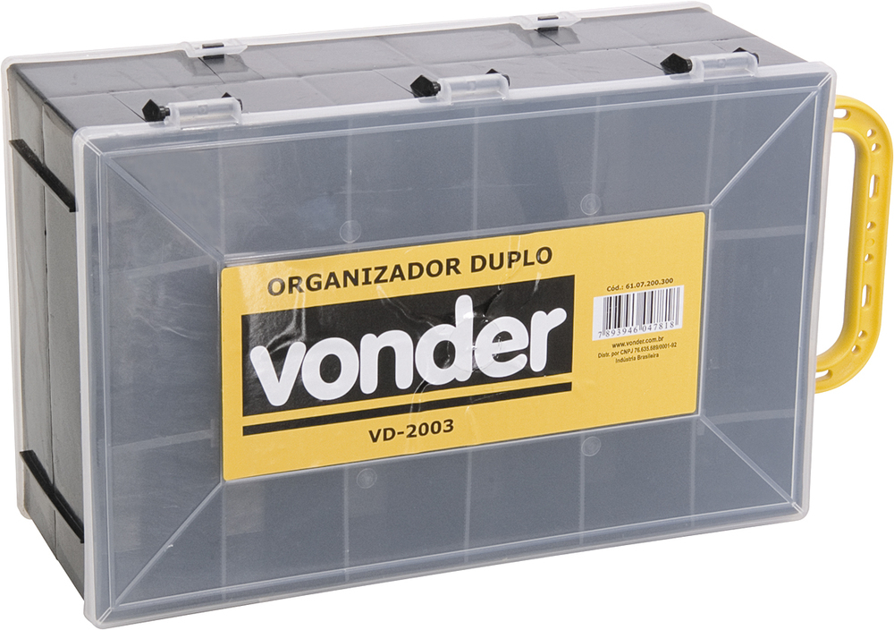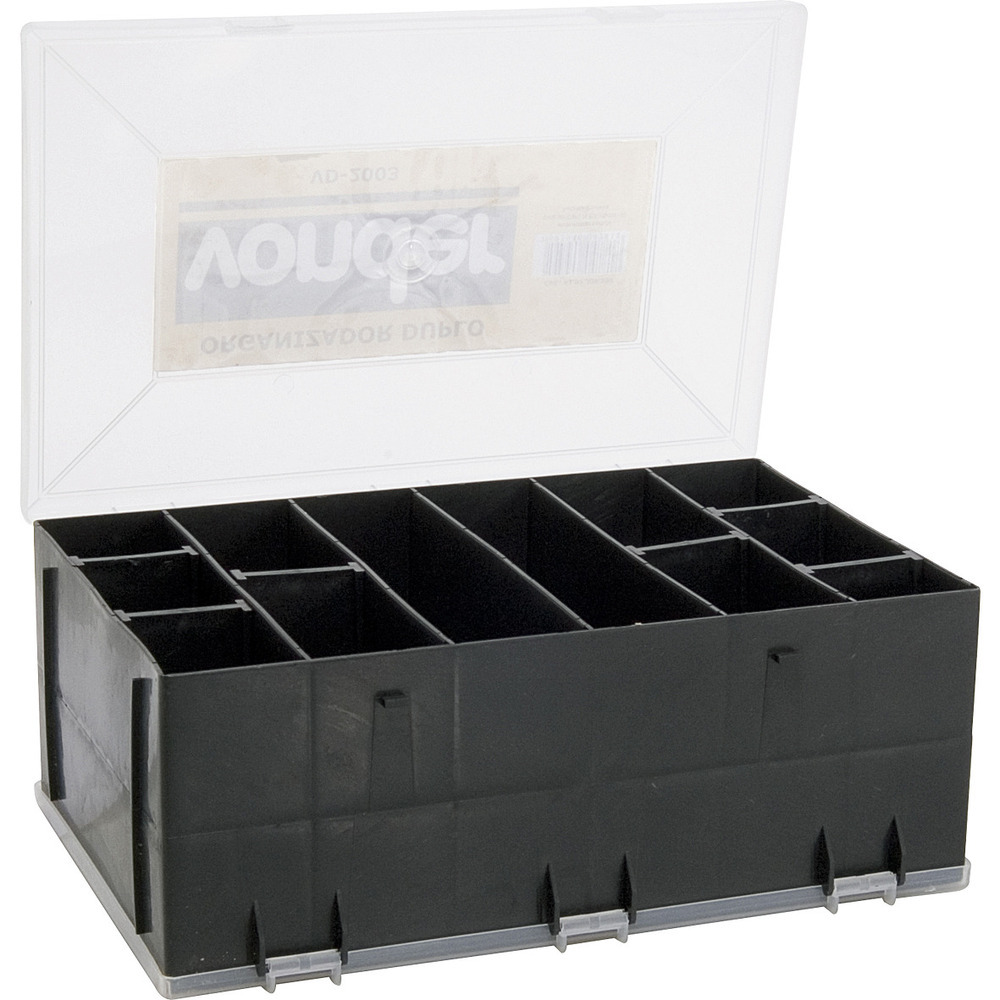Conteúdo da embalagem1 Organizador plásticoAplicações e dicas de usoIndicado para organizar e armazenar peças e acessórios em geralDestaques e diferenciaisDuplo, com duas tampas e divisórias removíveis e adaptáveis DETALHES TÉCNICOS Comprimento do organizador para ferramentas: 315,0 mm Largura do organizador para ferramentas: 200,0 mm Altura do organizador para ferramentas: 115,0 mm Material do organizador para ferramentas: Polipropileno Cor do organizador para ferramentas: Preto com abas transparentes Capacidade de carga: N/A