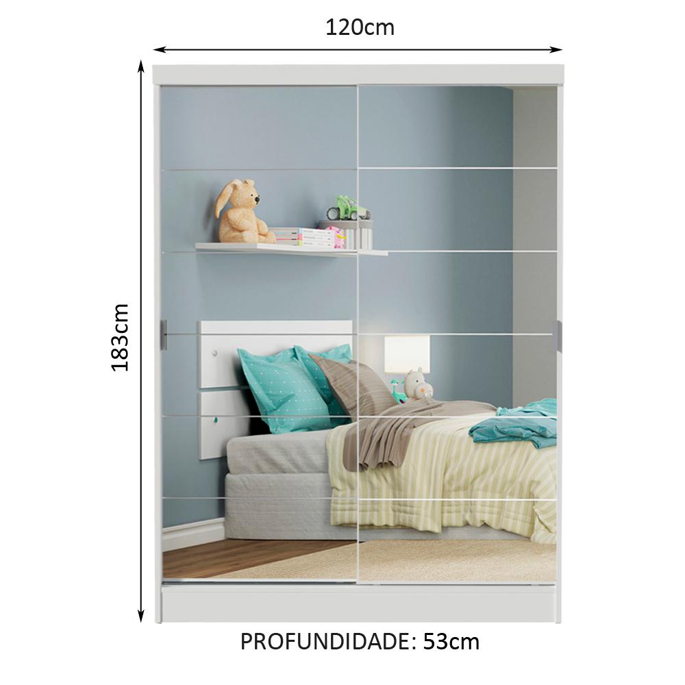 Guarda-Roupa Infantil Madesa Nick 2 Portas de Correr de Espelho - Branco