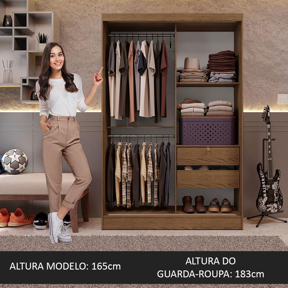 O Guarda-Roupa Luke com duas portas de correr de espelho é uma opção versátil e compacta para sua casa.Uma peça versátil, que pode ser utilizada no dormitório de solteiro ou em diferentes cômodos da casa como um armário multiuso.Possui espaços internos bem distribuídos e duas gavetas de fácil manuseio, sendo que uma possui tranca com chave.As portas de correr de espelho ampliam o ambiente de forma moderna sem comprometer a circulação. O puxador em alumínio é muito resistente e com formato levemente inclinado facilitando a abertura.O acabamento é no padrão amadeirado Rustic, feito em Pintura Poliéster ecológica.As medidas totais são:183 cm de altura120 cm de largura53 cm de profundidade. Imagens meramente ilustrativas.Itens inclusos no armário: - Dois (2) cabideiros - Duas (2) gavetas - Uma (1) tranca com chave para gaveta - Três (3) prateleiras - Duas (2) portas de correr de espelho Código do produto: 10445ZA-2EObs: A Madesa não disponibiliza serviço de montagem. O produto segue com manual de instalação e todas as ferragens necessárias para sua montagem.1-O produto é novo ou usado?R.: Todos os produtos da Madesa são novos, enviados da nossa fábrica diretamente para as casas de nossos clientes.2-O produto vem montado? Se não, vocês realizam a montagem?R.: A Madesa não disponibiliza serviço de montagem. Todos os produtos seguem com manual de instalação e as ferragens necessárias. Alguns produtos possuem vídeo explicando o passo a passo da montagem.3-Vocês possuem loja física? Posso retirar meu produto em mãos?R.: Não possuímos loja física, apenas loja virtual. Confira as opções de envio ao colocar o seu CEP.4-Qual é o valor do envio? Posso pagar separadamente?R.: O valor do envio é calculado com base no peso e volume do produto, e no CEP de destino. Você pode calcular o valor e prazo de entrega no simulador.5-A Madesa entrega em todo Brasil? Como é feita a entrega?R.: Sim, entregamos no Brasil inteiro através de transportadoras parceiras.6-O produto acompanha Nota Fiscal?R.: Sim, todos os produtos são entregues com suas respectivas notas fiscais.7-Os produtos possuem garantia?R.: Sim. A Madesa oferece 3 meses de garantia para defeitos de fabricação.A Madesa se dedica à sustentabilidade com várias iniciativas: temos uma usina própria para gerar energia que abastece uma de nossas fábricas. Selecionamos nossos fornecedores, priorizando aqueles que possuem um compromisso com a sustentabilidade e proteção do meio ambiente. Todo o plástico utilizado no setor produtivo é proveniente de reciclagem e as suas sobras são encaminhadas ao fornecedor que os recicla. Também investimos no desenvolvimento contínuo de nossos colaboradores e em ações educacionais que beneficiem a comunidade.