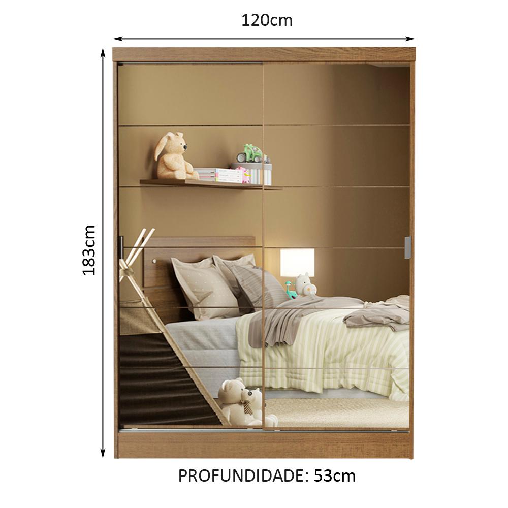 Guarda-Roupa Infantil Madesa Nick 2 Portas de Correr de Espelho - Rustic