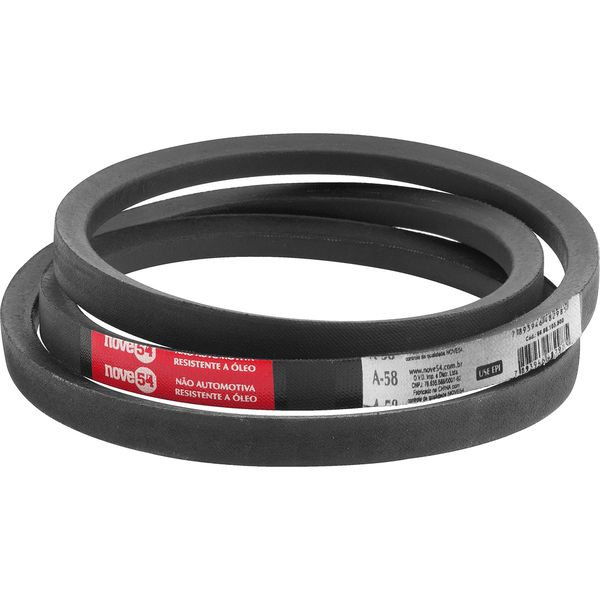 Conteúdo da embalagem1 CorreiaAplicações e dicas de usoIndicada para transmissão de força/velocidade do motor para o equipamento. Utilizada em máquinas industriais em geral, compressores, serras circulares de bancada, furadeiras de bancada e de coluna, betoneiras, entre outros. Não automotiva.Destaques e diferenciaisComposto à base de borracha natural que mantém os cordonéis na posição correta e protege a correia contra danos causados pela compressão. Possui tecido de algodão impregnado com borracha natural que protege os componentes internos da abrasão e do óleo. Conta ainda com fios de fibra sintética que têm como função a transmissão de força. DETALHES TÉCNICOS Referência da correia: A - 58 Perfil da correia: Perfil - A Largura da correia: 13 mm Espessura da correia: 8 mm Comprimento interno da correia: 1473,0 mm