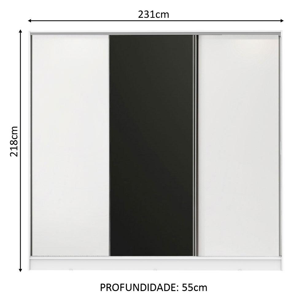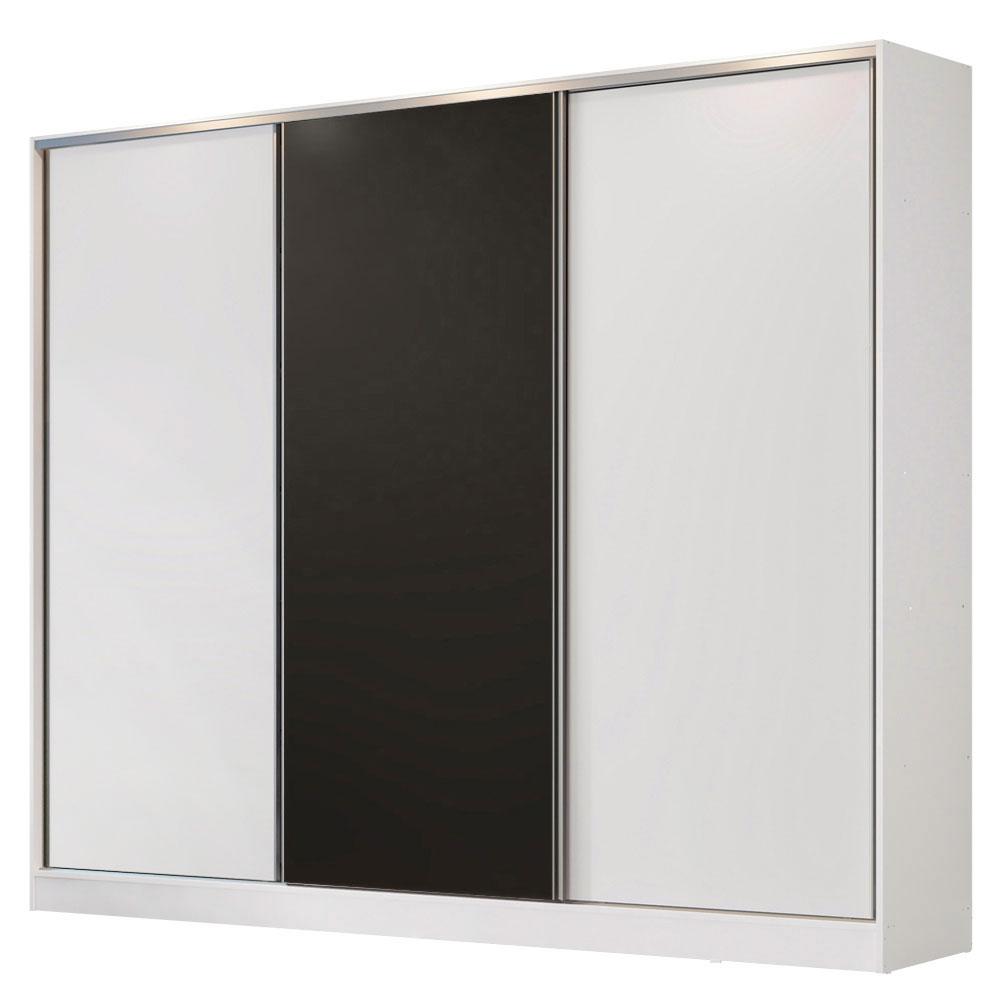 Guarda Roupa Casal 100% MDF Madesa Royale 3 Portas de Correr - Branco/Branco/Preto