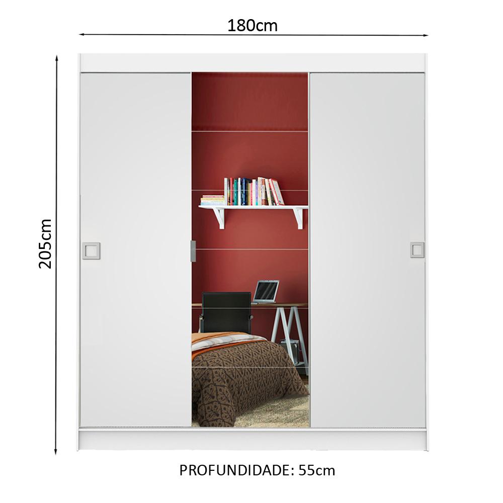 Guarda-Roupa Casal Madesa Veneza 3 Portas de Correr com Espelho - Branco