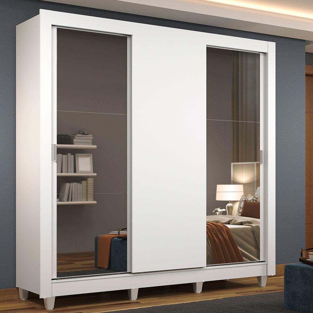 Guarda Roupa Casal Madesa Mônaco 3 Portas de Correr com Espelhos com Pés