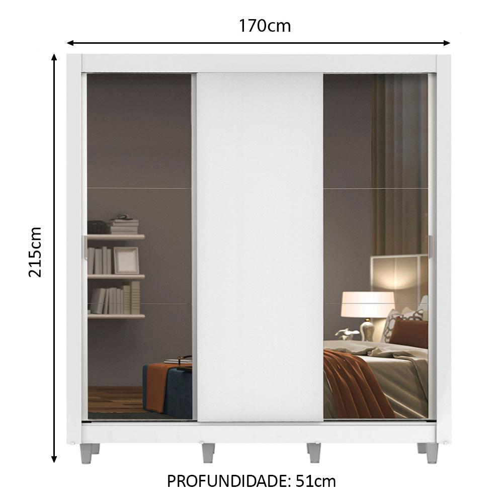 O Guarda-Roupa de Casal com melhor custo benefício do mercado. Ferragens de qualidade, duas portas com espelhos, cabideiro metálico e pintura em Poliéster Protetor que confere durabilidade e resistência. As portas de correr possuem trilho superior e inferior em alumínio e sistema de deslizamento suave garantindo melhor funcionamento.Total aproveitamento interno levando em conta o uso de duas pessoas. São muitos nichos que facilitam a organização de roupas, calçados e acessórios. O tubo cabideiro é muito resistente e possui espaço para roupas longas.Neste modelo, possui pés reguláveis em PVC que conferem beleza e uma melhor sustentação.O acabamento interno e externo é branco. O processo é feito em Pintura Poliéster de alta resistência que confere maior durabilidade ao produto. A pintura é ecológica, isenta de gases que vão para a atmosfera.Medidas totais do armário: 215 cm de altura x 170 cm de largura x 51 cm de profundidade.Imagens meramente ilustrativas.Itens inclusos:- Três (3) prateleiras totalizando seis (6) nichos- Um (1) cabideiro grande- Três (3) portas de correr sendo uma (1) de madeira e duas (2) com espelhos e puxadores em alumínio- Um (1) Kit com oito (8) pés em PVCCódigo do produto: 1093092ECPObs.: A Madesa não disponibiliza serviço de montagem. O produto segue com manual de instalação e todas as ferragens necessárias para sua montagem.A Madesa se dedica à sustentabilidade com várias iniciativas: temos uma usina própria para gerar energia que abastece uma de nossas fábricas. Selecionamos nossos fornecedores, priorizando aqueles que possuem um compromisso com a sustentabilidade e proteção do meio ambiente. Todo o plástico utilizado no setor produtivo é proveniente de reciclagem e as suas sobras são encaminhadas ao fornecedor que os recicla. Também investimos no desenvolvimento contínuo de nossos colaboradores e em ações educacionais que beneficiem a comunidade.