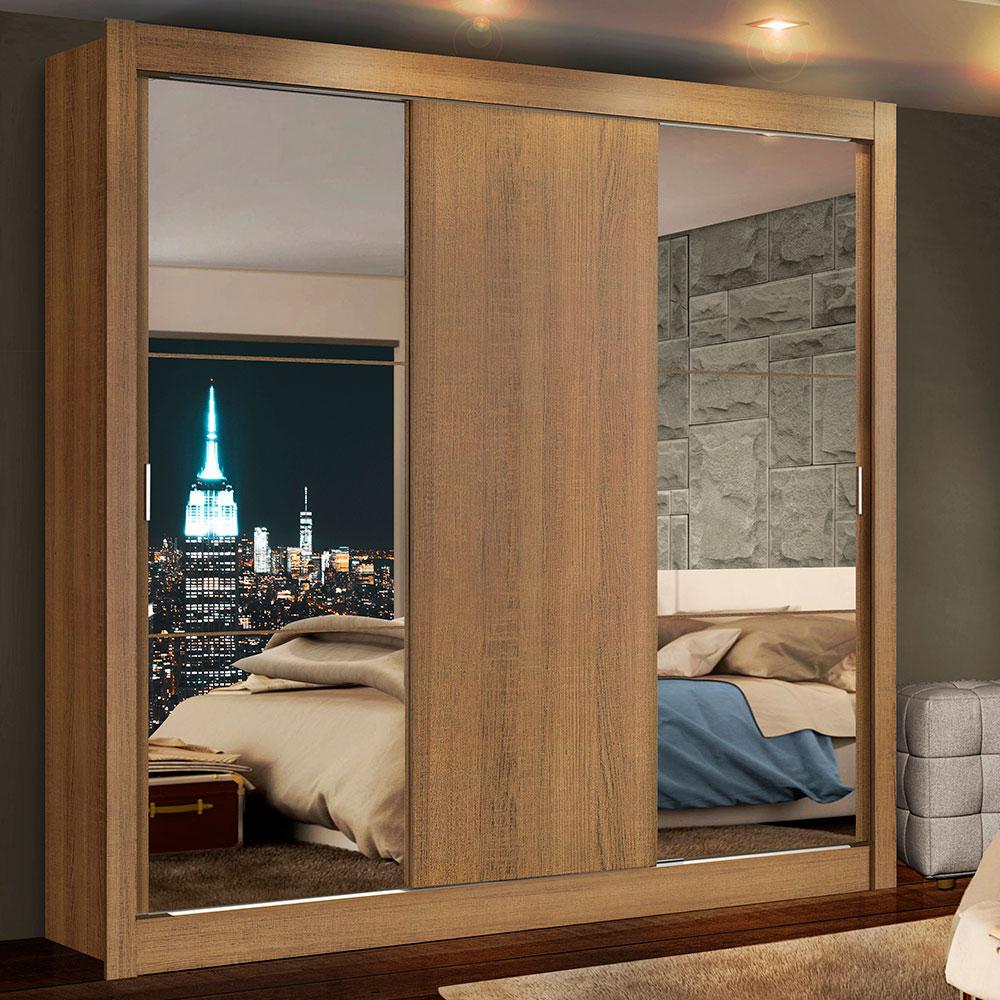 Guarda-Roupa Casal Madesa Lyon 3 Portas de Correr com Espelhos 2 Gavetas