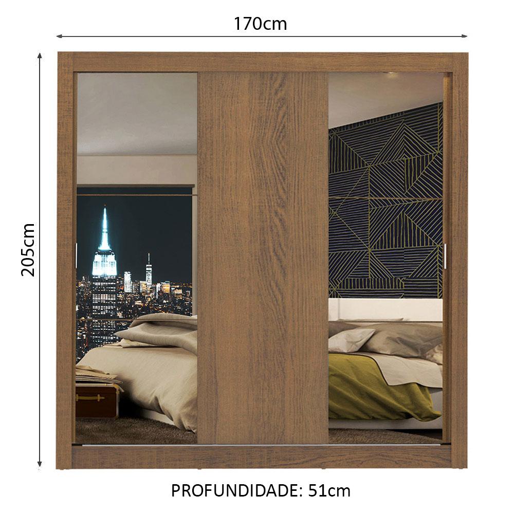 O Guarda-Roupa de Casal com melhor custo benefício do mercado. Ferragens de qualidade, duas portas com espelhos, cabideiro metálico e pintura em Poliéster Protetor que confere durabilidade e resistência. As portas de correr possuem trilho superior e inferior em alumínio e sistema de deslizamento suave garantindo melhor funcionamento.Total aproveitamento interno levando em conta o uso de duas pessoas. São duas gavetas internas na tonalidade branca com corrediça metálica, muitos nichos que facilitam a organização de roupas, calçados e acessórios. O tubo cabideiro é muito resistente e possui espaço para roupas longas.O acabamento externo é no padrão amadeirado Rustic e o interno é branco. Feito em Pintura Poliéster de alta resistência que confere maior durabilidade ao produto. A pintura é ecológica, isenta de gases que vão para a atmosfera.Medidas totais do armário: 205 cm de altura x 170 cm de largura x 51 cm de profundidade.Imagens meramente ilustrativas.Itens inclusos:- Três (3) prateleiras totalizando cinco (5) nichos- Duas (2) gavetas internas brancas- Um (1) cabideiro grande- Três (3) portas de correr sendo uma (1) de madeira e duas (2) com espelhos e puxadores em alumínioCódigo do produto: 10935Z2E2GObs.: A Madesa não disponibiliza serviço de montagem. O produto segue com manual de instalação e todas as ferragens necessárias para sua montagem.1-O produto é novo ou usado?R.: Todos os produtos da Madesa são novos, enviados da nossa fábrica diretamente para as casas de nossos clientes.2-O produto vem montado? Se não, vocês realizam a montagem?R.: A Madesa não disponibiliza serviço de montagem. Todos os produtos seguem com manual de instalação e as ferragens necessárias. Alguns produtos possuem vídeo explicando o passo a passo da montagem.3-Vocês possuem loja física? Posso retirar meu produto em mãos?R.: Não possuímos loja física, apenas loja virtual. Confira as opções de envio ao colocar o seu CEP.4-Qual é o valor do envio? Posso pagar separadamente?R.: O valor do envio é calculado com base no peso e volume do produto, e no CEP de destino. Você pode calcular o valor e prazo de entrega no simulador.5-A Madesa entrega em todo Brasil? Como é feita a entrega?R.: Sim, entregamos no Brasil inteiro através de transportadoras parceiras.6-O produto acompanha Nota Fiscal?R.: Sim, todos os produtos são entregues com suas respectivas notas fiscais.7-Os produtos possuem garantia?R.: Sim. A Madesa oferece 3 meses de garantia para defeitos de fabricação.A Madesa se dedica à sustentabilidade com várias iniciativas: temos uma usina própria para gerar energia que abastece uma de nossas fábricas. Selecionamos nossos fornecedores, priorizando aqueles que possuem um compromisso com a sustentabilidade e proteção do meio ambiente. Todo o plástico utilizado no setor produtivo é proveniente de reciclagem e as suas sobras são encaminhadas ao fornecedor que os recicla. Também investimos no desenvolvimento contínuo de nossos colaboradores e em ações educacionais que beneficiem a comunidade.