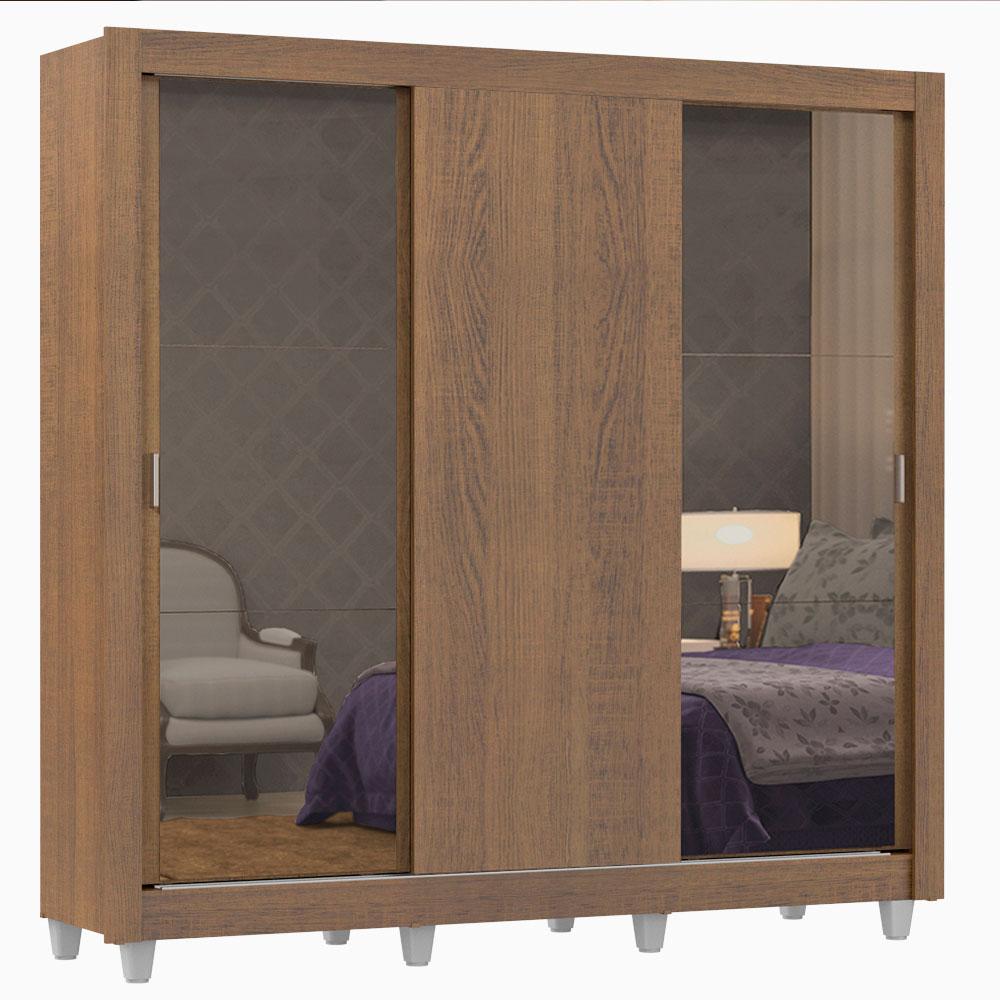 Guarda-Roupa Casal Madesa Lyon 3 Portas de Correr com Espelhos 2 Gavetas com Pés
