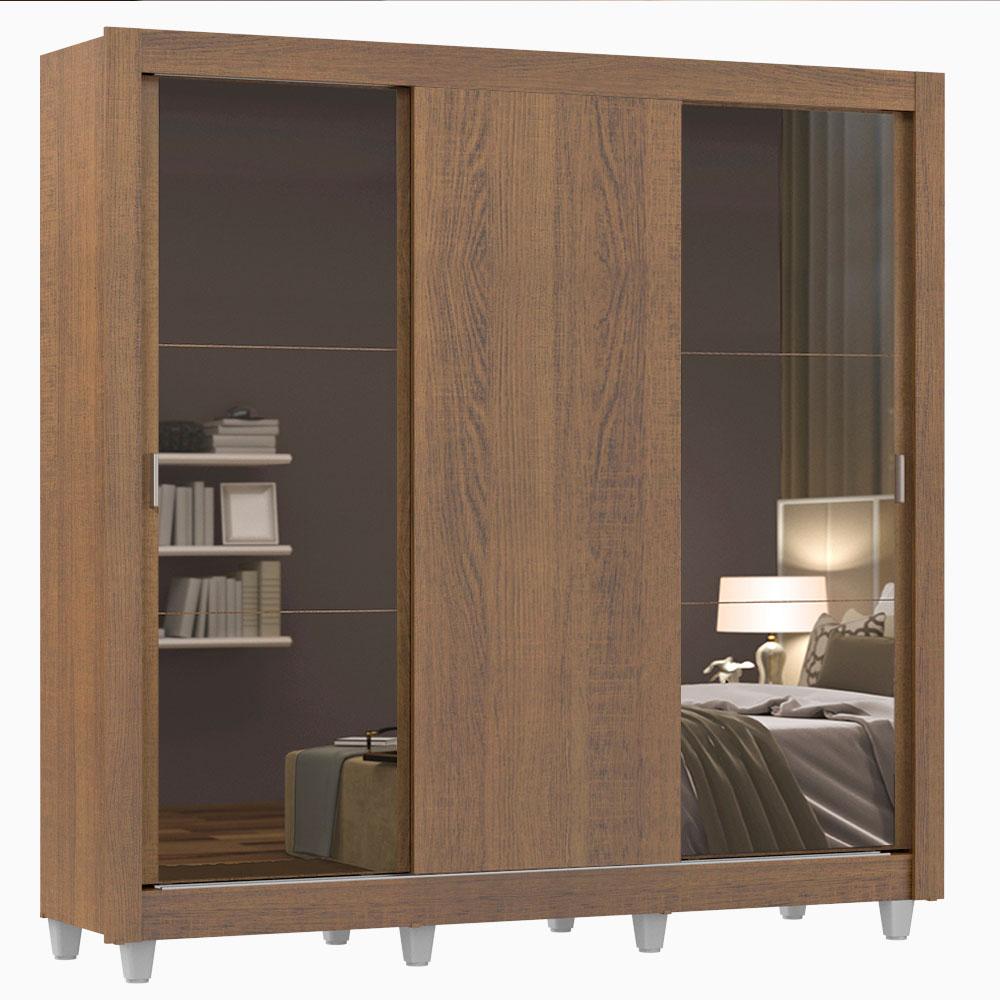 Guarda Roupa Casal Madesa Mônaco 3 Portas de Correr com Espelhos com Pés