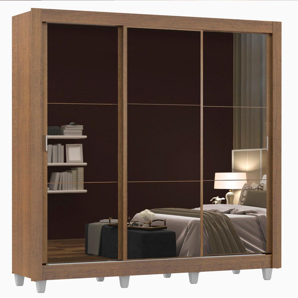 Guarda Roupa Casal Madesa Mônaco 3 Portas de Correr de Espelho com Pés - Rustic