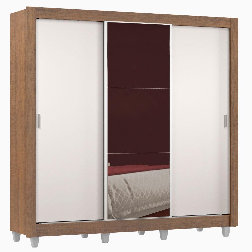 Guarda Roupa Casal Madesa Lyon Plus 3 Portas de Correr com Espelho 4 Gavetas com Pés - Rustic/Branco