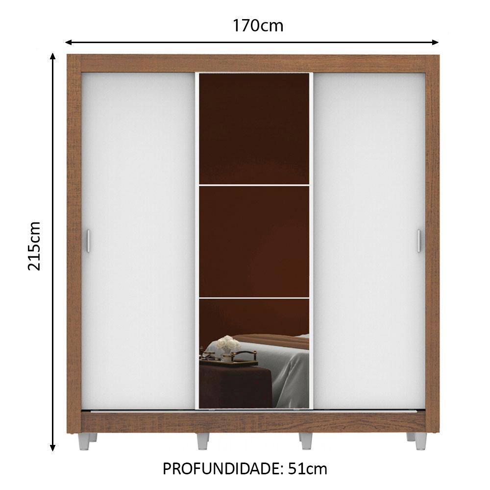 Guarda Roupa Casal Madesa Mônaco 3 Portas de Correr com Espelho com Pés - Rustic/Branco