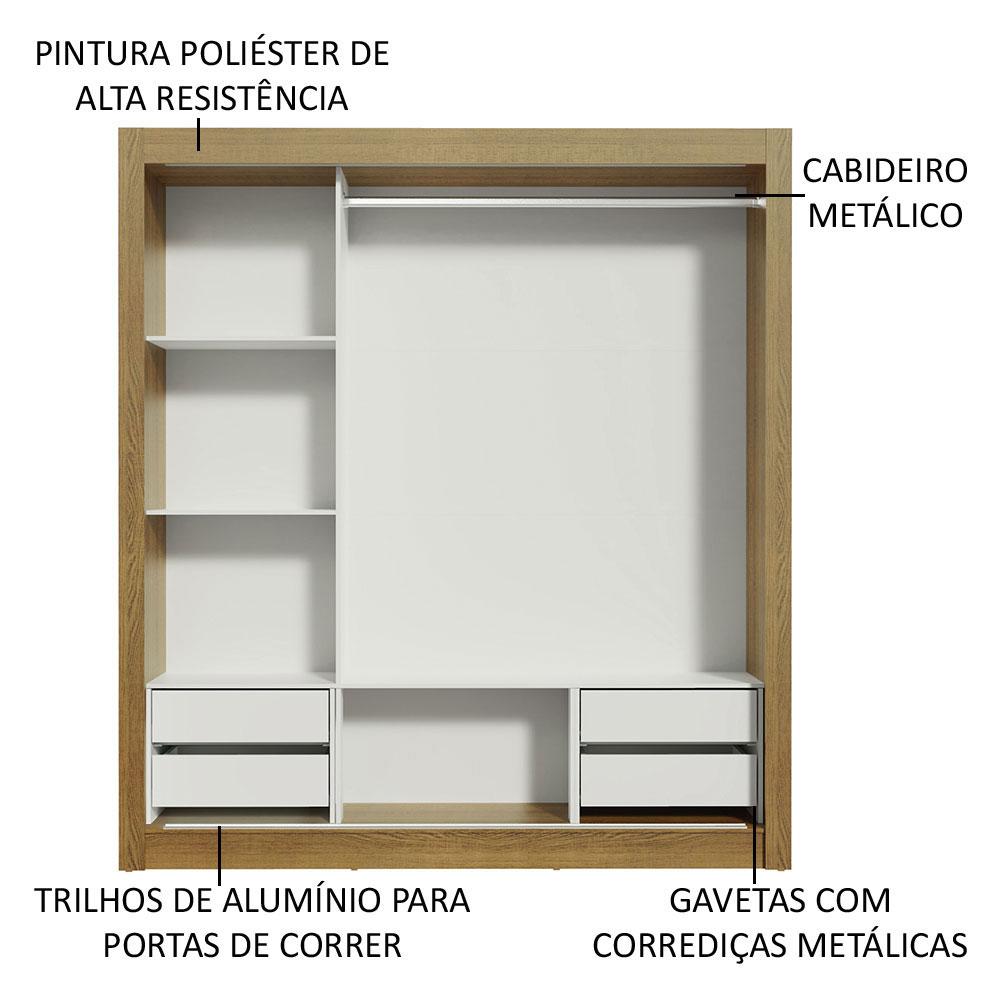 Guarda Roupa Casal Madesa Lyon Plus 3 Portas de Correr 4 Gavetas - Rustic/Branco