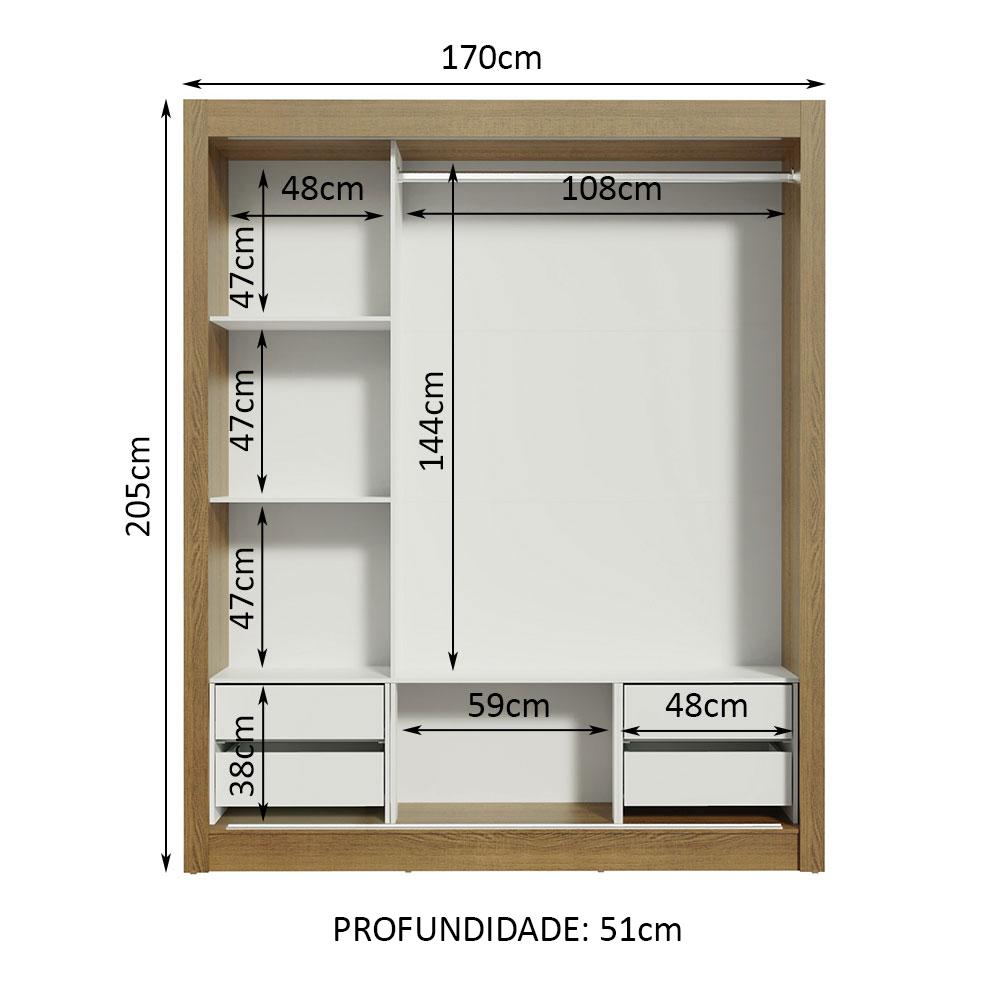 O Guarda-Roupa de Casal com melhor custo benefício do mercado. Ferragens de qualidade, cabideiro metálico, quatro gavetas e pintura em Poliéster Protetor que confere durabilidade e resistência. As portas de correr possuem trilho superior e inferior em alumínio e sistema de deslizamento suave garantindo melhor funcionamento.Total aproveitamento interno levando em conta o uso de duas pessoas. Nesta versão com quatro gavetas internas com corrediça metálica, diversos nichos que facilitam a organização de roupas, calçados e acessórios. O tubo cabideiro é muito resistente e possui espaço para roupas longas.Possui acabamento da estrutura interna e externa em amadeirado Rustic. As portas, costas e gavetas possuem acabamento branco. A pintura é ecológica, isenta de gases que vão para a atmosfera.Medidas totais do armário: 205 cm de altura x 170 cm de largura x 51 cm de profundidade.Imagens meramente ilustrativas.Itens inclusos:- Três (3) prateleiras totalizando quatro (4) nichos- Quatro (4) gavetas internas- Um (1) cabideiro grande- Três (3) portas de correr com 2 puxadores em alumínioCódigo do produto: 10936E4GObs.: A Madesa não disponibiliza serviço de montagem. O produto segue com manual de instalação e todas as ferragens necessárias para sua montagem.1-O produto é novo ou usado?R.: Todos os produtos da Madesa são novos, enviados da nossa fábrica diretamente para as casas de nossos clientes.2-O produto vem montado? Se não, vocês realizam a montagem?R.: A Madesa não disponibiliza serviço de montagem. Todos os produtos seguem com manual de instalação e as ferragens necessárias. Alguns produtos possuem vídeo explicando o passo a passo da montagem.3-Vocês possuem loja física? Posso retirar meu produto em mãos?R.: Não possuímos loja física, apenas loja virtual. Confira as opções de envio ao colocar o seu CEP.4-Qual é o valor do envio? Posso pagar separadamente?R.: O valor do envio é calculado com base no peso e volume do produto, e no CEP de destino. Você pode calcular o valor e prazo de entrega no simulador.5-A Madesa entrega em todo Brasil? Como é feita a entrega?R.: Sim, entregamos no Brasil inteiro através de transportadoras parceiras.6-O produto acompanha Nota Fiscal?R.: Sim, todos os produtos são entregues com suas respectivas notas fiscais.7-Os produtos possuem garantia?R.: Sim. A Madesa oferece 3 meses de garantia para defeitos de fabricação.A Madesa se dedica à sustentabilidade com várias iniciativas: temos uma usina própria para gerar energia que abastece uma de nossas fábricas. Selecionamos nossos fornecedores, priorizando aqueles que possuem um compromisso com a sustentabilidade e proteção do meio ambiente. Todo o plástico utilizado no setor produtivo é proveniente de reciclagem e as suas sobras são encaminhadas ao fornecedor que os recicla. Também investimos no desenvolvimento contínuo de nossos colaboradores e em ações educacionais que beneficiem a comunidade.