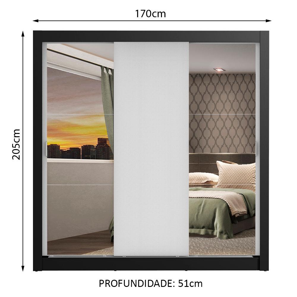 O Guarda-Roupa Casal Mônaco da Madesa conta com ferragens de qualidade, portas de correr com trilho superior e inferior em alumínio e sistema de deslizamento suave garantindo melhor funcionamento.Duas das portas possuem espelhos que são bastante práticos, trazem mais sofisticação ao produto e também ampliam o ambiente.O aproveitamento interno é ideal para um casal. São diversos nichos que facilitam a organização de roupas, calçados e acessórios. O tubo cabideiro é metálico, muito resistente e possui espaço para roupas longas.O acabamento combina os tons preto e branco e é feito com a Pintura Poliéster de 7 camadas exclusiva da Madesa, um método ecológico e que confere maior durabilidade ao produto.Medidas totais: 205 cm de altura x 170 cm de largura x 51 cm de profundidade.As imagens são meramente ilustrativas.Itens inclusos:- Três (3) prateleiras totalizando seis (6) nichos- Um (1) cabideiro grande- Três (3) portas de correr, sendo uma (1) de madeira e duas (2) com espelhos e puxadores em alumínioCódigo do produto: 1093772EObs.: A Madesa não disponibiliza serviço de montagem. O produto segue com as ferragens e manual com todos os passos para a instalação.1 – O produto é novo ou usado?R.: Todos os produtos da Madesa são novos, enviados da nossa fábrica diretamente para as casas de nossos clientes.2 – O produto vem montado? Se não, vocês realizam a montagem?R.: A Madesa não disponibiliza serviço de montagem. Todos os produtos seguem com manual de instalação e as ferragens necessárias. Alguns produtos possuem vídeo explicando o passo a passo da montagem.3 – Vocês possuem loja física? Posso retirar meu produto em mãos?R.: Não possuímos loja física, apenas loja virtual. Confira as opções de envio ao colocar o seu CEP.4 – Qual é o valor do envio? Posso pagar separadamente?R.: O valor do envio é calculado com base no peso e volume do produto, e no CEP de destino. Você pode calcular o valor e prazo de entrega no simulador.5 – A Madesa entrega em todo Brasil? Como é feita a entrega?R.: Sim, entregamos no Brasil inteiro através de transportadoras parceiras.6 – O produto acompanha Nota Fiscal?R.: Sim, todos os produtos são entregues com suas respectivas notas fiscais.7 – Os produtos possuem garantia?R.: Sim. A Madesa oferece 3 meses de garantia para defeitos de fabricação.A Madesa se dedica à sustentabilidade com várias iniciativas: temos uma usina própria para gerar energia que abastece uma de nossas fábricas. Selecionamos nossos fornecedores, priorizando aqueles que possuem um compromisso com a sustentabilidade e proteção do meio ambiente. Todo o plástico utilizado no setor produtivo é proveniente de reciclagem e as suas sobras são encaminhadas ao fornecedor que os recicla. Também investimos no desenvolvimento contínuo de nossos colaboradores e em ações educacionais que beneficiem a comunidade.
