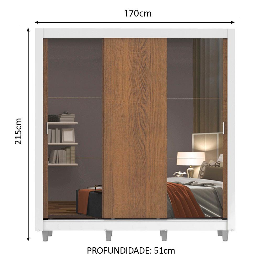 O Guarda-Roupa de Casal com melhor custo benefício do mercado. Ferragens de qualidade, duas portas com espelhos, cabideiro metálico e pintura em Poliéster Protetor que confere durabilidade e resistência. As portas de correr possuem trilho superior e inferior em alumínio e sistema de deslizamento suave garantindo melhor funcionamento.Total aproveitamento interno levando em conta o uso de duas pessoas. São muitos nichos que facilitam a organização de roupas, calçados e acessórios. O tubo cabideiro é muito resistente e possui espaço para roupas longas.Neste modelo, possui pés reguláveis em PVC que conferem beleza e uma melhor sustentação.O acabamento da estrutura é branco e as portas são no padrão amadeirado Rustic. O processo é feito em Pintura Poliéster de alta resistência que confere maior durabilidade ao produto. A pintura é ecológica, isenta de gases que vão para a atmosfera.Medidas totais do armário: 215 cm de altura x 170 cm de largura x 51 cm de profundidade.Imagens meramente ilustrativas.Itens inclusos:- Três (3) prateleiras totalizando seis (6) nichos- Um (1) cabideiro grande- Três (3) portas de correr sendo uma (1) de madeira e duas (2) com espelhos e puxadores em alumínio- Um (1) Kit com oito (8) pés em PVCCódigo do produto: 10939B2ECPObs.: A Madesa não disponibiliza serviço de montagem. O produto segue com manual de instalação e todas as ferragens necessárias para sua montagem.A Madesa se dedica à sustentabilidade com várias iniciativas: temos uma usina própria para gerar energia que abastece uma de nossas fábricas. Selecionamos nossos fornecedores, priorizando aqueles que possuem um compromisso com a sustentabilidade e proteção do meio ambiente. Todo o plástico utilizado no setor produtivo é proveniente de reciclagem e as suas sobras são encaminhadas ao fornecedor que os recicla. Também investimos no desenvolvimento contínuo de nossos colaboradores e em ações educacionais que beneficiem a comunidade.
