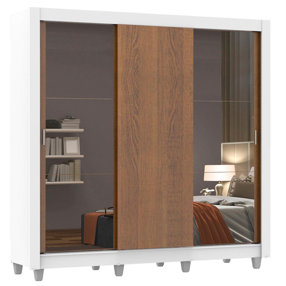 Guarda Roupa Casal Madesa Mônaco 3 Portas de Correr com Espelhos com Pés