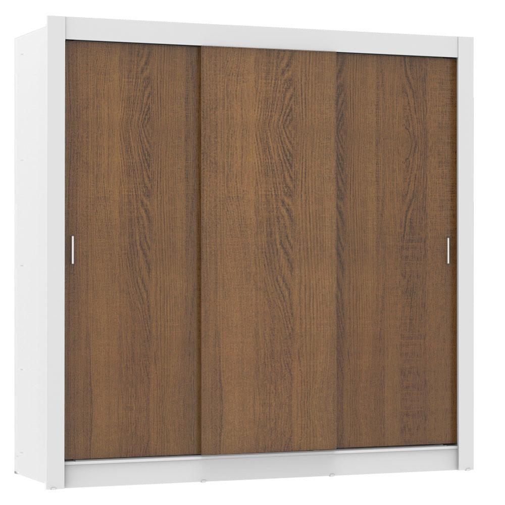 Guarda Roupa Casal Madesa Lyon Plus 3 Portas de Correr 4 Gavetas - Branco/Rustic