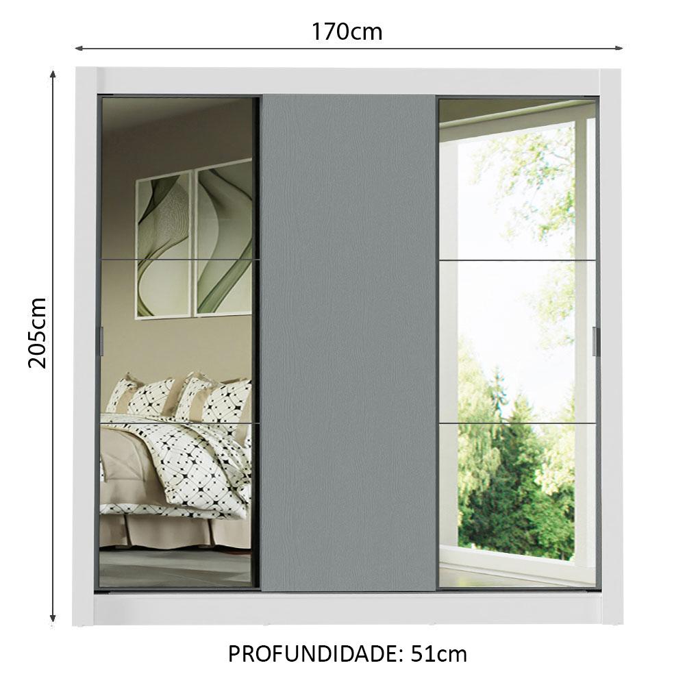 Guarda-Roupa Casal Madesa Mônaco 3 Portas de Correr com Espelhos - Branco/Cinza