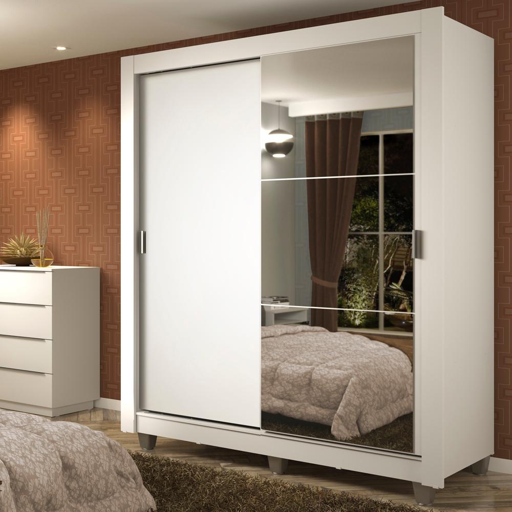 Guarda-Roupa Solteiro Madesa Dallas Plus 2 Portas de Correr com Espelho 4 Gavetas com Pés - Branco