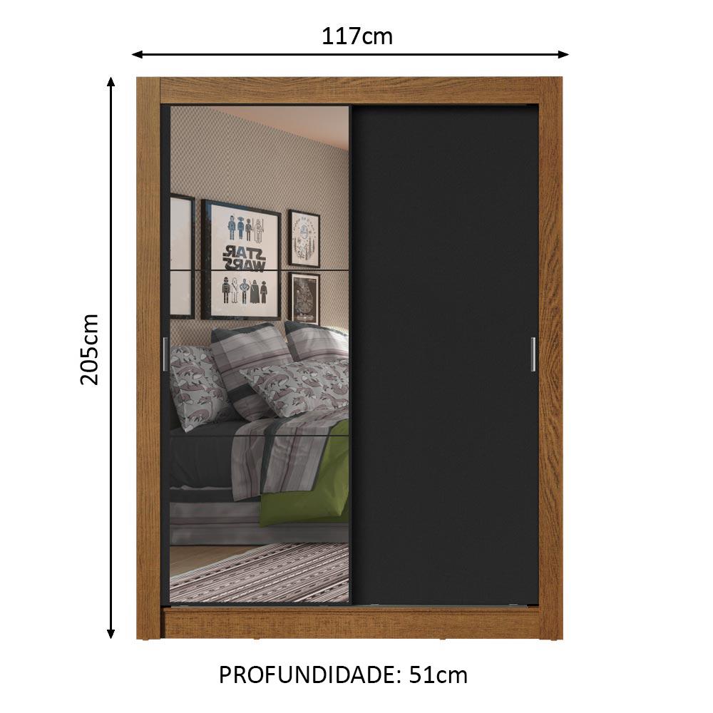 O Guarda-Roupa Dallas Plus conta com duas portas de correr de deslizamento suave, trilhos em alumínio, dobradiças metálicas e ferragens de qualidade que proporcionam melhor sustentação ao móvel.Internamente é muito bem dividido, com duas prateleiras e dois nichos, além de um cabideiro de metal resistente e de tamanho diferenciado, 105 cm, com espaço para roupas longas. Além disso, os espelhos presentes em uma das portas dão mais profundidade ao ambiente e trazem praticidade para o dia a dia.O tamanho é ideal quarto de solteiro e um dos grandes diferenciais deste modelo são as quatro gavetas, que possuem corrediças metálicas e proporcionam uma ótima organização de roupas, acessórios e muito mais.O acabamento da parte interna é branco. A estrutura externa é no padrão amadeirado Rustic e as portas são pretas O processo é feito coma Pintura Poliéster de 7 camadas exclusiva da Madesa. Este método é ecológico e aumenta a durabilidade ao móvel.Medidas totais: 205 cm de altura x 117 cm de largura x 51 cm de profundidade.As imagens são meramente ilustrativas.Itens inclusos:- Um (1) cabideiro metálico grande- Duas (2) prateleiras e dois (2) nichos- Quatro (4) gavetas com corrediças metálicas- Duas (2) portas de correr de madeira com puxadores em PVC, sendo uma (1) com espelhos e uma (1) de madeiraCódigo do produto: 10947K1E4GObs.: A Madesa não oferece serviço de montagem. A embalagem acompanha ferragens e manual com todos os passos para a montagem do produto.1 – O produto é novo ou usado?R.: Todos os produtos da Madesa são novos, enviados da nossa fábrica diretamente para as casas de nossos clientes.2 – O produto vem montado? Se não, vocês realizam a montagem?R.: A Madesa não disponibiliza serviço de montagem. Todos os produtos seguem com manual de instalação e as ferragens necessárias. Alguns produtos possuem vídeo explicando o passo a passo da montagem.3 – Vocês possuem loja física? Posso retirar meu produto em mãos?R.: Não possuímos loja física, apenas loja virtual. Confira as opções de envio ao colocar o seu CEP.4 – Qual é o valor do envio? Posso pagar separadamente?R.: O valor do envio é calculado com base no peso e volume do produto, e no CEP de destino. Você pode calcular o valor e prazo de entrega no simulador.5 – A Madesa entrega em todo Brasil? Como é feita a entrega?R.: Sim, entregamos no Brasil inteiro através de transportadoras parceiras.6 – O produto acompanha Nota Fiscal?R.: Sim, todos os produtos são entregues com suas respectivas notas fiscais.7 – Os produtos possuem garantia?R.: Sim. A Madesa oferece 3 meses de garantia para defeitos de fabricação.A Madesa se dedica à sustentabilidade com várias iniciativas: temos uma usina própria para gerar energia que abastece uma de nossas fábricas. Selecionamos nossos fornecedores, priorizando aqueles que possuem um compromisso com a sustentabilidade e proteção do meio ambiente. Todo o plástico utilizado no setor produtivo é proveniente de reciclagem e as suas sobras são encaminhadas ao fornecedor que os recicla. Também investimos no desenvolvimento contínuo de nossos colaboradores e em ações educacionais que beneficiem a comunidade.