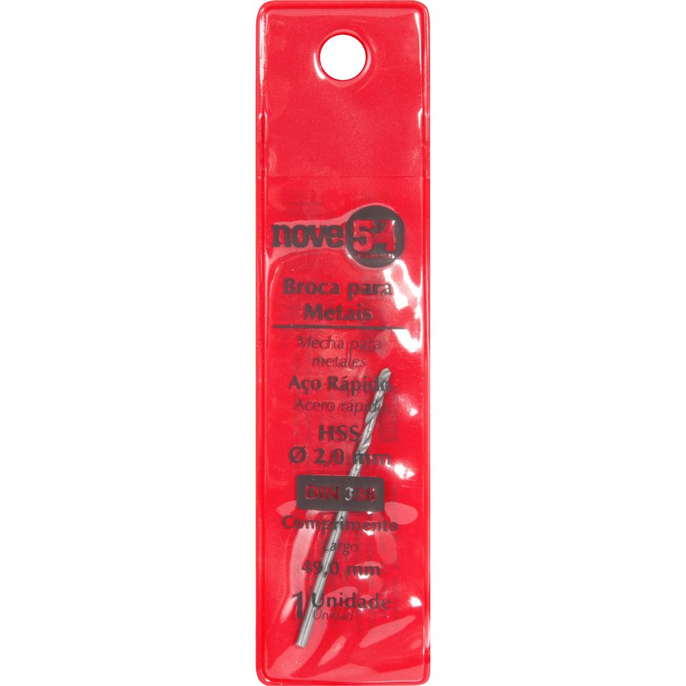 Broca de Aço Rápido 2,0 mm DIN338 Hss Encartelada Nove54