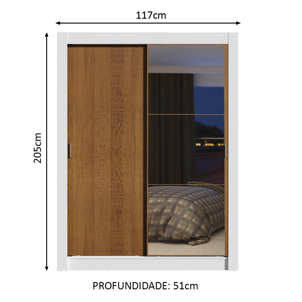 Guarda-Roupa com duas portas de correr de deslizamento suave, trilhos em alumínio, dobradiças metálicas e ferragens de qualidade que proporcionam melhor sustentação ao móvel. Contempla quatro gavetas com corrediças metálicas, duas prateleiras e três nichos, além de um cabideiro de metal resistente e de tamanho diferenciado, 105 cm.Pensado na medida certa para quarto de solteiro, possui acabamento interno e externo branco. As portas possuem acabamento em amadeirado Rustic. O processo é feito em Pintura Poliéster de alta resistência que confere maior qualidade e durabilidade ao produto.Medidas totais do guarda-roupa: 205 cm de altura x 117 cm de largura x 51 cm de profundidade.Imagem meramente ilustrativa.Itens inclusos:- Quatro (4) gavetas com corrediças metálicas- Um (1) cabideiro metálico grande- Duas (2) prateleiras e três (3) nichos- Duas (2) portas de correr, sendo uma (1) de madeira e uma (1) com espelhos, ambas com puxadores em PVCObs.: A Madesa não disponibiliza serviço de montagem. O produto segue com manual de instalação e todas as ferragens necessárias para sua montagem.1-O produto é novo ou usado?R.: Todos os produtos da Madesa são novos, enviados da nossa fábrica diretamente para as casas de nossos clientes.2-O produto vem montado? Se não, vocês realizam a montagem?R.: A Madesa não disponibiliza serviço de montagem. Todos os produtos seguem com manual de instalação e as ferragens necessárias. Alguns produtos possuem vídeo explicando o passo a passo da montagem.3-Vocês possuem loja física? Posso retirar meu produto em mãos?R.: Não possuímos loja física, apenas loja virtual. Confira as opções de envio ao colocar o seu CEP.4-Qual é o valor do envio? Posso pagar separadamente?R.: O valor do envio é calculado com base no peso e volume do produto, e no CEP de destino. Você pode calcular o valor e prazo de entrega no simulador.5-A Madesa entrega em todo Brasil? Como é feita a entrega?R.: Sim, entregamos no Brasil inteiro através de transportadoras parceiras.6-O produto acompanha Nota Fiscal?R.: Sim, todos os produtos são entregues com suas respectivas notas fiscais.7-Os produtos possuem garantia?R.: Sim. A Madesa oferece 3 meses de garantia para defeitos de fabricação.A Madesa se dedica à sustentabilidade com várias iniciativas: temos uma usina própria para gerar energia que abastece uma de nossas fábricas. Selecionamos nossos fornecedores, priorizando aqueles que possuem um compromisso com a sustentabilidade e proteção do meio ambiente. Todo o plástico utilizado no setor produtivo é proveniente de reciclagem e as suas sobras são encaminhadas ao fornecedor que os recicla. Também investimos no desenvolvimento contínuo de nossos colaboradores e em ações educacionais que beneficiem a comunidade.