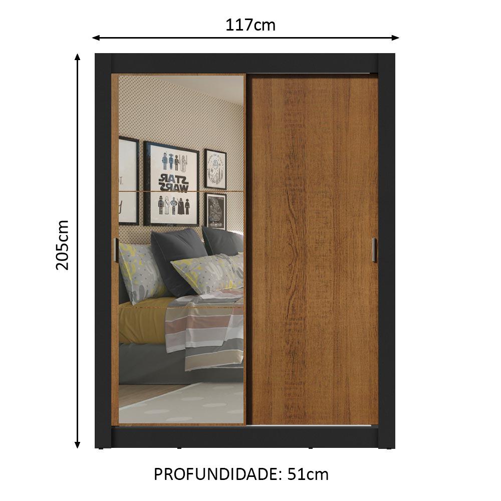 O Guarda-Roupa Dallas Plus conta com duas portas de correr de deslizamento suave, trilhos em alumínio, dobradiças metálicas e ferragens de qualidade que proporcionam melhor sustentação ao móvel.Internamente é muito bem dividido, com duas prateleiras e dois nichos, além de um cabideiro de metal resistente e de tamanho diferenciado, 105 cm, com espaço para roupas longas. Além disso, os espelhos presentes em uma das portas dão mais profundidade ao ambiente e trazem praticidade para o dia a dia.O tamanho é ideal quarto de solteiro e um dos grandes diferenciais deste modelo são as quatro gavetas, que possuem corrediças metálicas e proporcionam uma ótima organização de roupas, acessórios e muito mais.O acabamento da parte interna é branco. A estrutura externa é preta e as portas são no padrão amadeirado Rustic. O processo é feito coma Pintura Poliéster de 7 camadas exclusiva da Madesa. Este método é ecológico e aumenta a durabilidade ao móvel.Medidas totais: 205 cm de altura x 117 cm de largura x 51 cm de profundidade.As imagens são meramente ilustrativas.Itens inclusos:- Um (1) cabideiro metálico grande- Duas (2) prateleiras e dois (2) nichos- Quatro (4) gavetas com corrediças metálicas- Duas (2) portas de correr de madeira com puxadores em PVC, sendo uma (1) com espelhos e uma (1) de madeiraCódigo do produto: 1094D81E4GObs.: A Madesa não oferece serviço de montagem. A embalagem acompanha ferragens e manual com todos os passos para a montagem do produto.1 – O produto é novo ou usado?R.: Todos os produtos da Madesa são novos, enviados da nossa fábrica diretamente para as casas de nossos clientes.2 – O produto vem montado? Se não, vocês realizam a montagem?R.: A Madesa não disponibiliza serviço de montagem. Todos os produtos seguem com manual de instalação e as ferragens necessárias. Alguns produtos possuem vídeo explicando o passo a passo da montagem.3 – Vocês possuem loja física? Posso retirar meu produto em mãos?R.: Não possuímos loja física, apenas loja virtual. Confira as opções de envio ao colocar o seu CEP.4 – Qual é o valor do envio? Posso pagar separadamente?R.: O valor do envio é calculado com base no peso e volume do produto, e no CEP de destino. Você pode calcular o valor e prazo de entrega no simulador.5 – A Madesa entrega em todo Brasil? Como é feita a entrega?R.: Sim, entregamos no Brasil inteiro através de transportadoras parceiras.6 – O produto acompanha Nota Fiscal?R.: Sim, todos os produtos são entregues com suas respectivas notas fiscais.7 – Os produtos possuem garantia?R.: Sim. A Madesa oferece 3 meses de garantia para defeitos de fabricação.A Madesa se dedica à sustentabilidade com várias iniciativas: temos uma usina própria para gerar energia que abastece uma de nossas fábricas. Selecionamos nossos fornecedores, priorizando aqueles que possuem um compromisso com a sustentabilidade e proteção do meio ambiente. Todo o plástico utilizado no setor produtivo é proveniente de reciclagem e as suas sobras são encaminhadas ao fornecedor que os recicla. Também investimos no desenvolvimento contínuo de nossos colaboradores e em ações educacionais que beneficiem a comunidade.