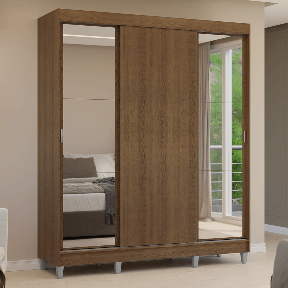 Guarda-Roupa Casal com Pés 3 Portas de Correr com Espelhos Rustic Reno Madesa