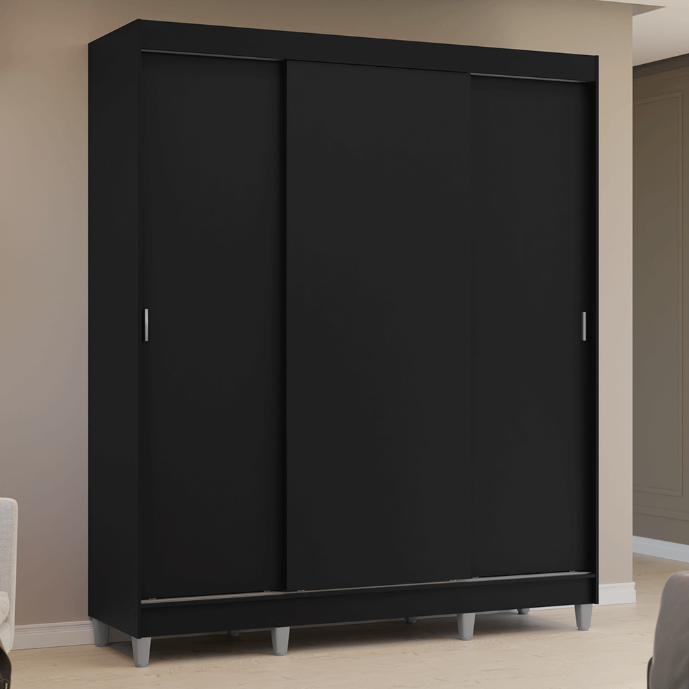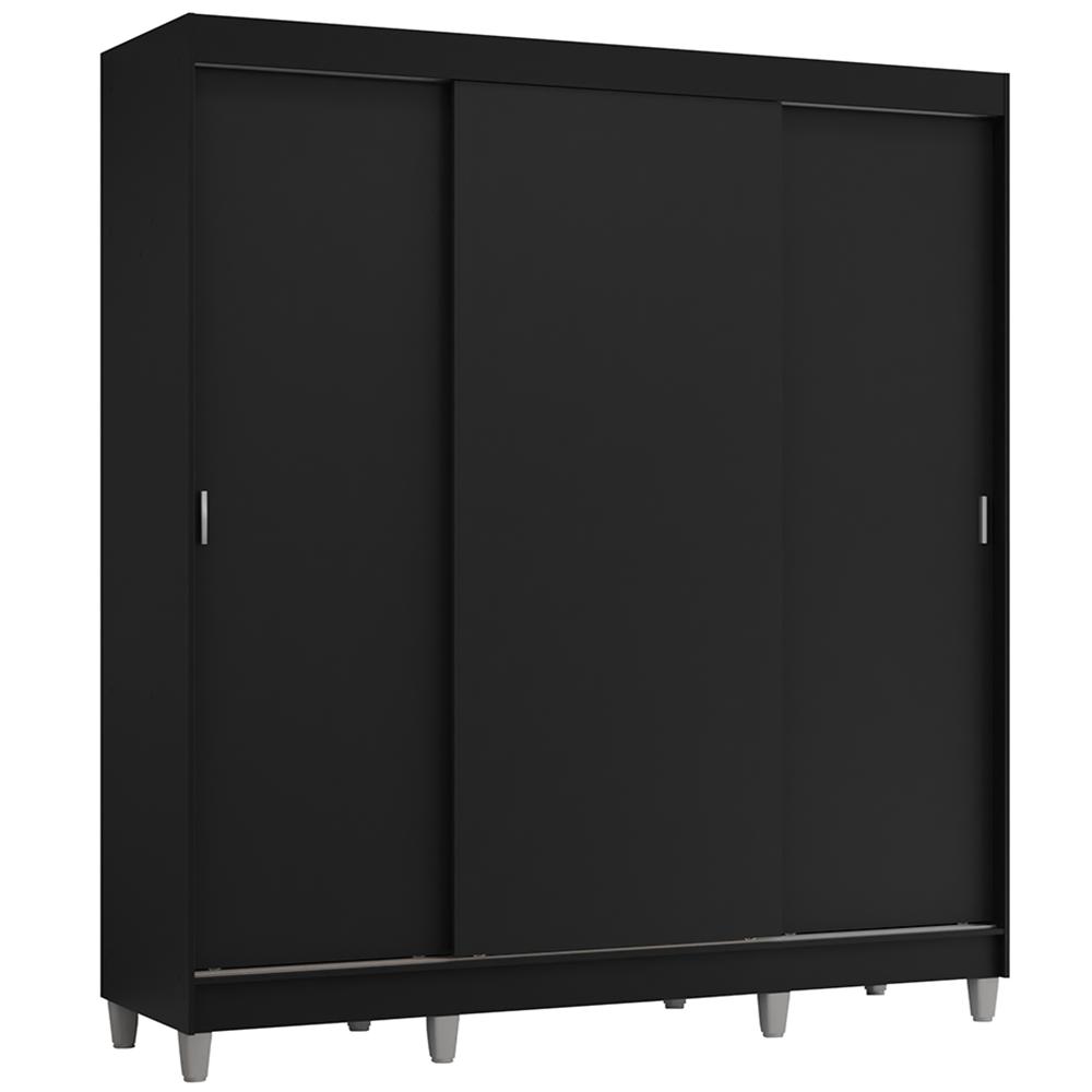 Guarda-Roupa Casal com Pés 3 Portas de Correr Preto Reno Madesa