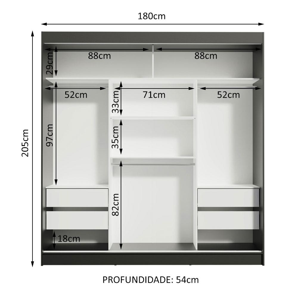 O Guarda-Roupa Casal Reno da Madesa traz uma combinação perfeita entre design moderno, ótima disposição interna e materiais de qualidade.São três portas de correr com trilhos em alumínio e deslizamento suave, que otimizam o espaço do quarto, sem atrapalhar no momento da abertura. Além disso, duas portas contam com espelhos que ampliam o ambiente e são muito úteis no dia a dia.Possui também quatro gavetas espaçosas com corrediças metálicas, dois cabideiros com espaço para roupas longas e um cabideiro para roupas mais curtas.Tem lugar pra tudo que um casal precisa! Malas, calçados, travesseiros, colchas e o que mais você necessitar.Para completar, o acabamento externo é preto e o interno é branco. As portas são no padrão amadeirado Rustic. Todo o processo é feito com a tradicional Pintura Poliéster de 7 camadas da Madesa. Um método ecológico e que traz maior resistência ao móvel.Medidas totais do guarda-roupa: 205 cm de altura x 180 cm de largura x 54 cm de profundidade.As imagens são meramente ilustrativas.Itens inclusos:- Oito (8) nichos internos- Quatro (4) gavetas internas- Três (3) cabideiros- Três (3) portas de correr, sendo uma de madeira e duas (2) com espelhos e puxadores em PVCCódigo do produto: 1095D82EObs.: A Madesa não oferece serviços de montagem. A embalagem acompanha manual com todos os passos para a montagem do produto.1 – O produto é novo ou usado?R.: Todos os produtos da Madesa são novos, enviados da nossa fábrica diretamente para as casas de nossos clientes.2 – O produto vem montado? Se não, vocês realizam a montagem?R.: A Madesa não disponibiliza serviço de montagem. Todos os produtos seguem com manual de instalação e as ferragens necessárias. Alguns produtos possuem vídeo explicando o passo a passo da montagem.3 – Vocês possuem loja física? Posso retirar meu produto em mãos?R.: Não possuímos loja física, apenas loja virtual. Confira as opções de envio ao colocar o seu CEP.4 – Qual é o valor do envio? Posso pagar separadamente?R.: O valor do envio é calculado com base no peso e volume do produto, e no CEP de destino. Você pode calcular o valor e prazo de entrega no simulador.5 – A Madesa entrega em todo Brasil? Como é feita a entrega?R.: Sim, entregamos no Brasil inteiro através de transportadoras parceiras.6 – O produto acompanha Nota Fiscal?R.: Sim, todos os produtos são entregues com suas respectivas notas fiscais.7 – Os produtos possuem garantia?R.: Sim. A Madesa oferece 3 meses de garantia para defeitos de fabricação.A Madesa se dedica à sustentabilidade com várias iniciativas: temos uma usina própria para gerar energia que abastece uma de nossas fábricas. Selecionamos nossos fornecedores, priorizando aqueles que possuem um compromisso com a sustentabilidade e proteção do meio ambiente. Todo o plástico utilizado no setor produtivo é proveniente de reciclagem e as suas sobras são encaminhadas ao fornecedor que os recicla. Também investimos no desenvolvimento contínuo de nossos colaboradores e em ações educacionais que beneficiem a comunidade.