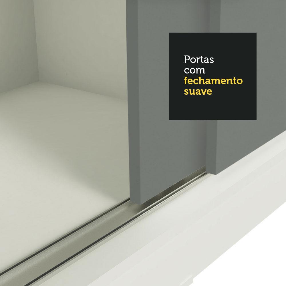 Guarda-Roupa Casal Madesa Reno 3 Portas de Correr com Espelho - Branco/Cinza