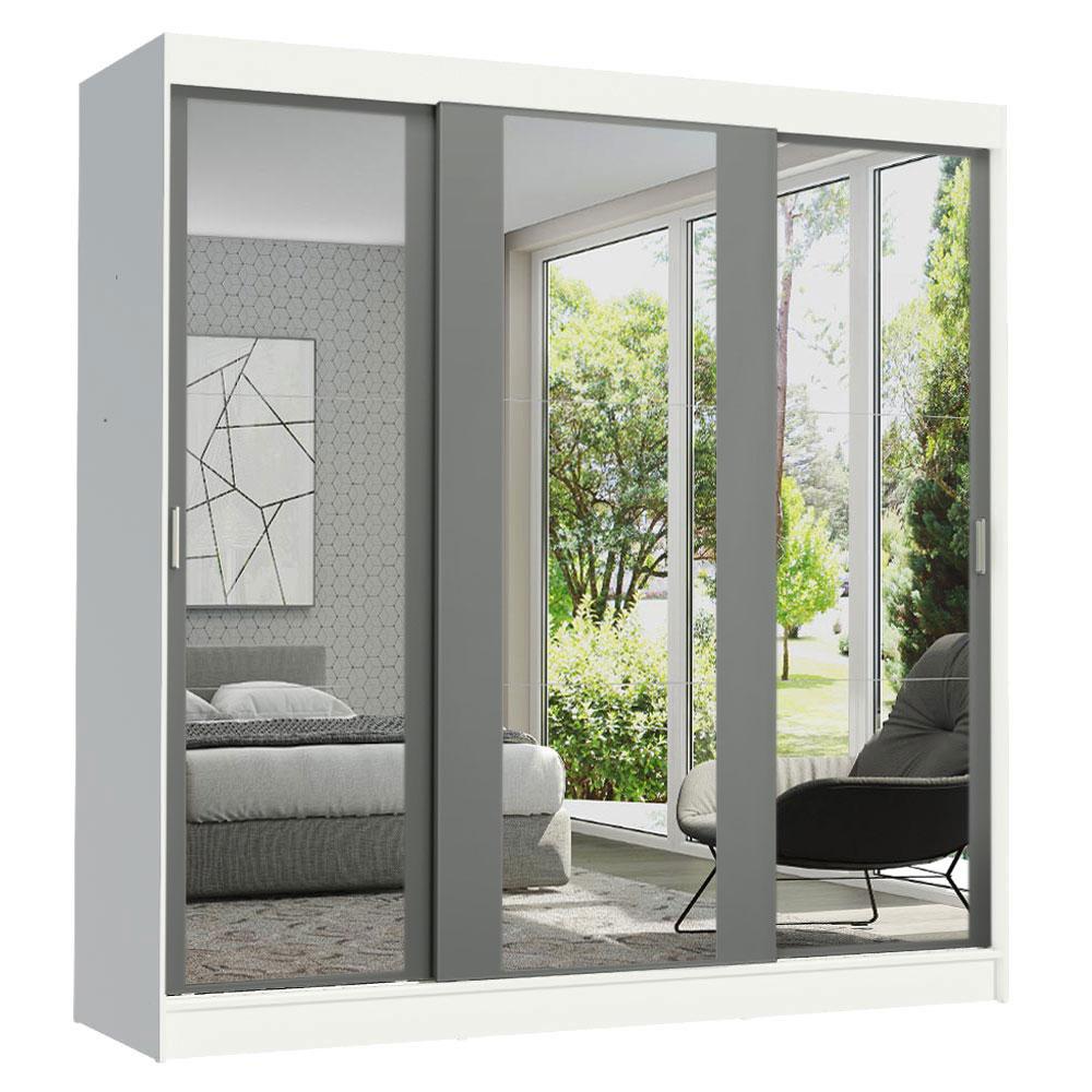 Guarda-Roupa Casal Madesa Reno 3 Portas de Correr de Espelho - Branco/Cinza