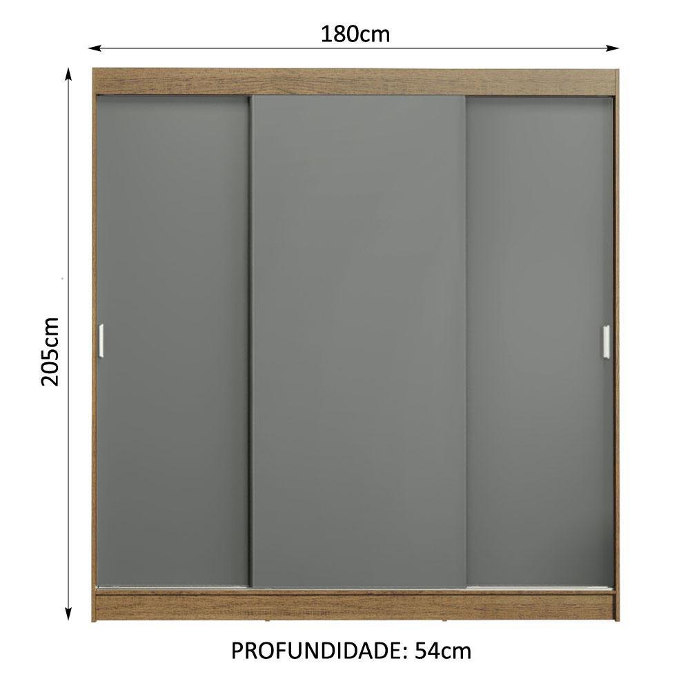 Guarda-Roupa Casal Madesa Reno 3 Portas de Correr - Rustic/Cinza