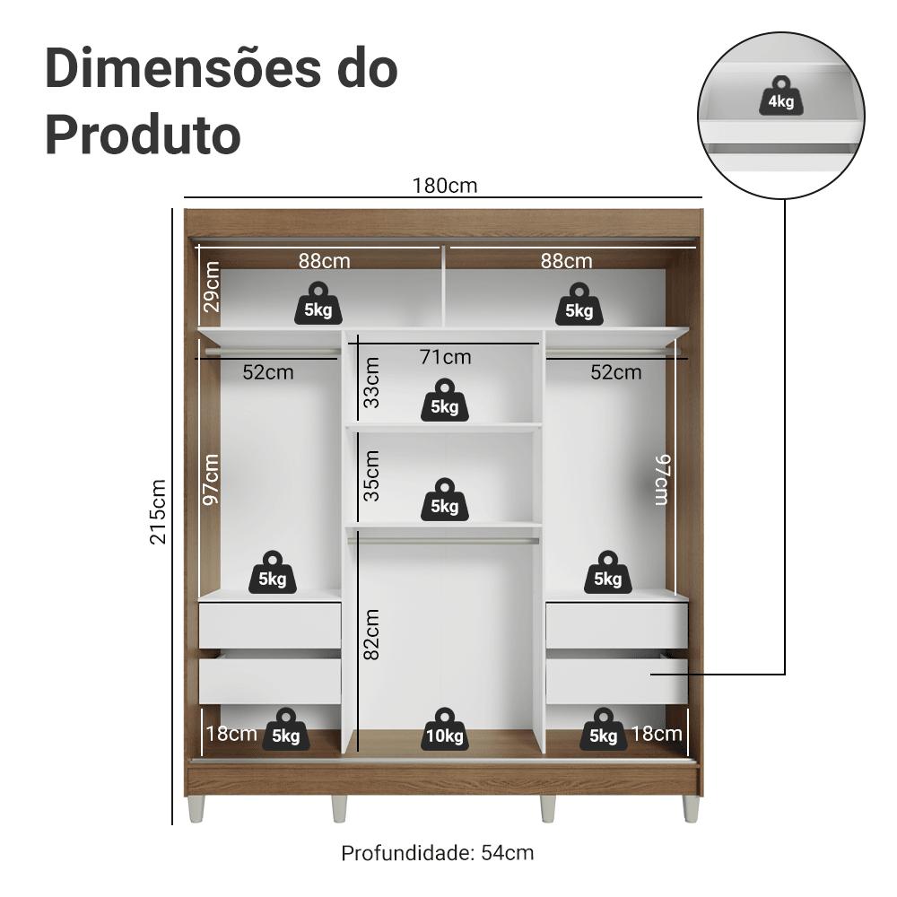 O Guarda-Roupa Casal Reno da Madesa é a escolha ideal para quem busca organização, praticidade e design moderno no quarto. Com acabamento elegante e materiais de qualidade, ele alia funcionalidade e estilo.Essa versão possui três portas de correr, sendo duas com espelhos, que trazem mais praticidade no dia a dia. Os trilhos de alumínio garantem deslizamento suave e silencioso, otimizando o espaço do quarto. Por dentro, o guarda-roupa oferece quatro gavetas espaçosas com corrediças metálicas e três cabideiros, proporcionando espaço ideal para roupas, acessórios, malas e outros itens, mantendo tudo sempre organizado.O acabamento da estrutura é em tom amadeirado Rustic e das portas em Cinza, combinando resistência e elegância. Com design pensado para unir beleza e funcionalidade, o Guarda-Roupa Reno com pés é perfeito para transformar o seu quarto em um ambiente moderno e organizado.Medidas:- 180 cm de largura- 54 cm de profundidade- 215 cm de alturaO que você recebe:- Um Guarda-Roupa com três portas de correr sendo duas com espelhoCódigo do produto: 1095F92ECPÉ importante saber:- Material: MDP- Imagens meramente ilustrativas.- A Madesa não disponibiliza serviço de montagem.- Por segurança, é obrigatório fixar o móvel na parede.- O produto segue com manual de instalação e todas as ferragens necessárias para sua montagem.A Madesa se dedica à sustentabilidade com várias iniciativas: temos uma usina própria que gera energia para uma das fábricas. Priorizamos fornecedores responsáveis com o meio ambiente. Todo o plástico utilizado na produção é reciclado, e as sobras também são reaproveitadas. Investimos no desenvolvimento de nossos colaboradores e em ações que beneficiem a comunidade.