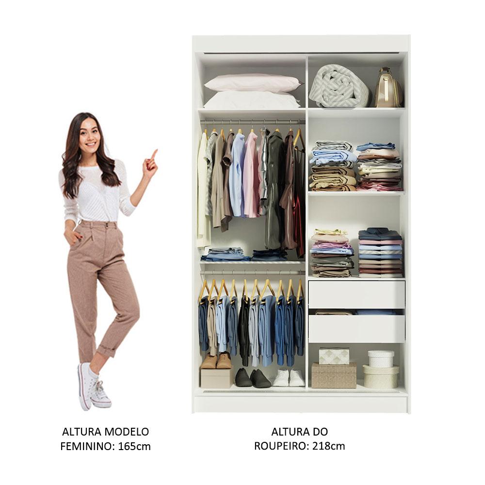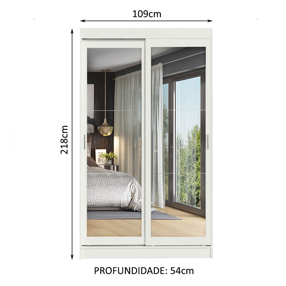 Pensado na medida para quarto de solteiro, o Guarda-Roupa Tokio da Madesa tem como destaque o total aproveitamento de espaço.Os materiais utilizados são de alta qualidade, com duas portas de correr com deslizamento suave e puxadores em alumínio, dobradiças metálicas e trilho superior e inferior em alumínio. Ambas as portas possuem espelhos, que além de trazerem beleza, também transmitem a sensação de um ambiente mais amplo.Internamente, contempla duas gavetas com corrediças metálicas, diversas prateleiras e nichos, além de dois cabideiros de madeira com espaço para roupas longas e curtas. A profundidade maior é um grande diferencial.Possui acabamento interno e externo branco, feito em Pintura Poliéster de alta resistência, que confere maior qualidade e durabilidade ao produto.Medidas totais do guarda-roupa: 218 cm de altura x 109 cm de largura x 54 cm de profundidade.Imagens meramente ilustrativas. A decoração não acompanha o produto.Itens inclusos:- Duas (2) portas de correr em MDP com espelhos e puxadores em alumínio- Duas (2) gavetas com corrediças metálicas- Dois (2) cabideiros de madeira- Cinco (5) nichosCódigo do produto: 1097092EObs.: A Madesa não disponibiliza serviço de montagem. O produto segue com as ferragens necessárias e manual com todos os passos para a instalação.1 – O produto é novo ou usado?R.: Todos os produtos da Madesa são novos, enviados da nossa fábrica diretamente para as casas de nossos clientes.2 – O produto vem montado? Se não, vocês realizam a montagem?R.: A Madesa não disponibiliza serviço de montagem. Todos os produtos seguem com manual de instalação e as ferragens necessárias. Alguns produtos possuem vídeo explicando o passo a passo da montagem.3 – Vocês possuem loja física? Posso retirar meu produto em mãos?R.: Não possuímos loja física, apenas loja virtual. Confira as opções de envio ao colocar o seu CEP.4 – Qual é o valor do envio? Posso pagar separadamente?R.: O valor do envio é calculado com base no peso e volume do produto, e no CEP de destino. Você pode calcular o valor e prazo de entrega no simulador.5 – A Madesa entrega em todo Brasil? Como é feita a entrega?R.: Sim, entregamos no Brasil inteiro através de transportadoras parceiras.6 – O produto acompanha Nota Fiscal?R.: Sim, todos os produtos são entregues com suas respectivas notas fiscais.7 – Os produtos possuem garantia?R.: Sim. A Madesa oferece 3 meses de garantia para defeitos de fabricação.A Madesa se dedica à sustentabilidade com várias iniciativas: temos uma usina própria para gerar energia que abastece uma de nossas fábricas. Selecionamos nossos fornecedores, priorizando aqueles que possuem um compromisso com a sustentabilidade e proteção do meio ambiente. Todo o plástico utilizado no setor produtivo é proveniente de reciclagem e as suas sobras são encaminhadas ao fornecedor que os recicla. Também investimos no desenvolvimento contínuo de nossos colaboradores e em ações educacionais que beneficiem a comunidade.