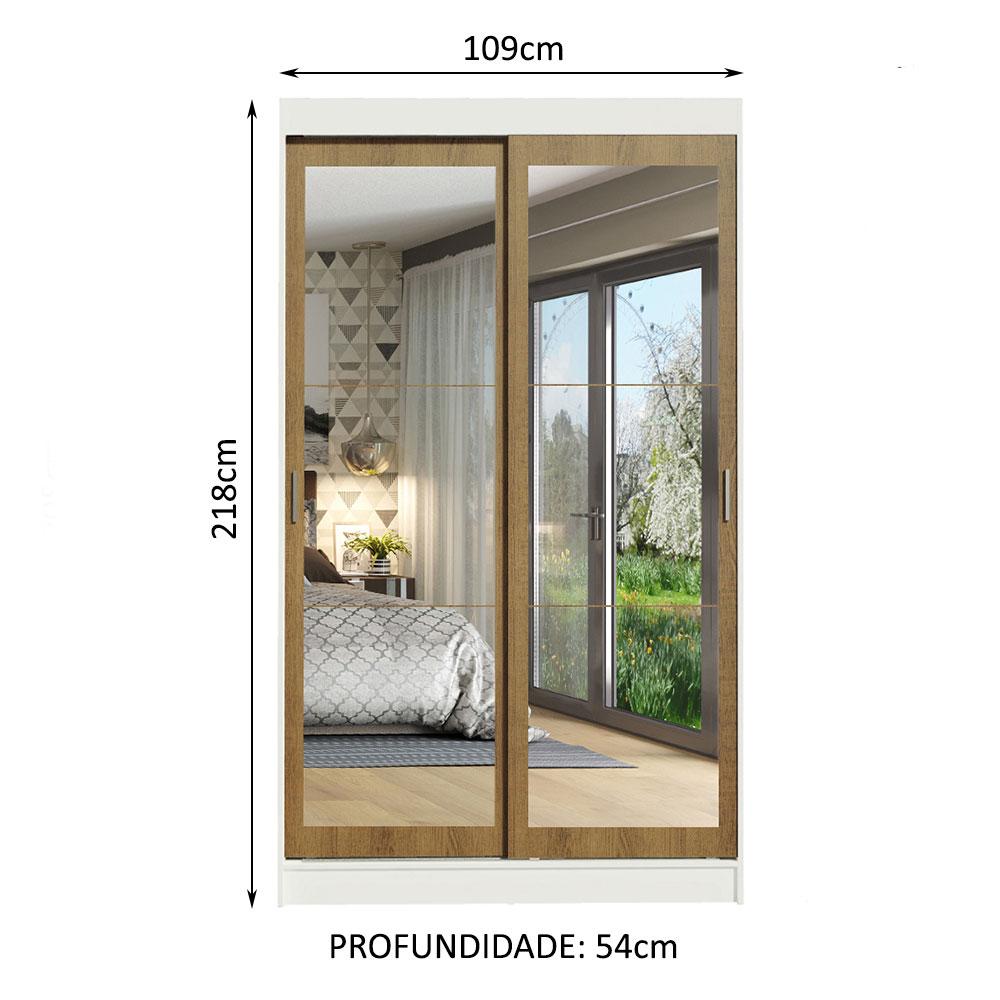 Guarda-Roupa Solteiro Madesa Tokio 2 Portas de Correr de Espelho 2 Gavetas - Branco/Rustic