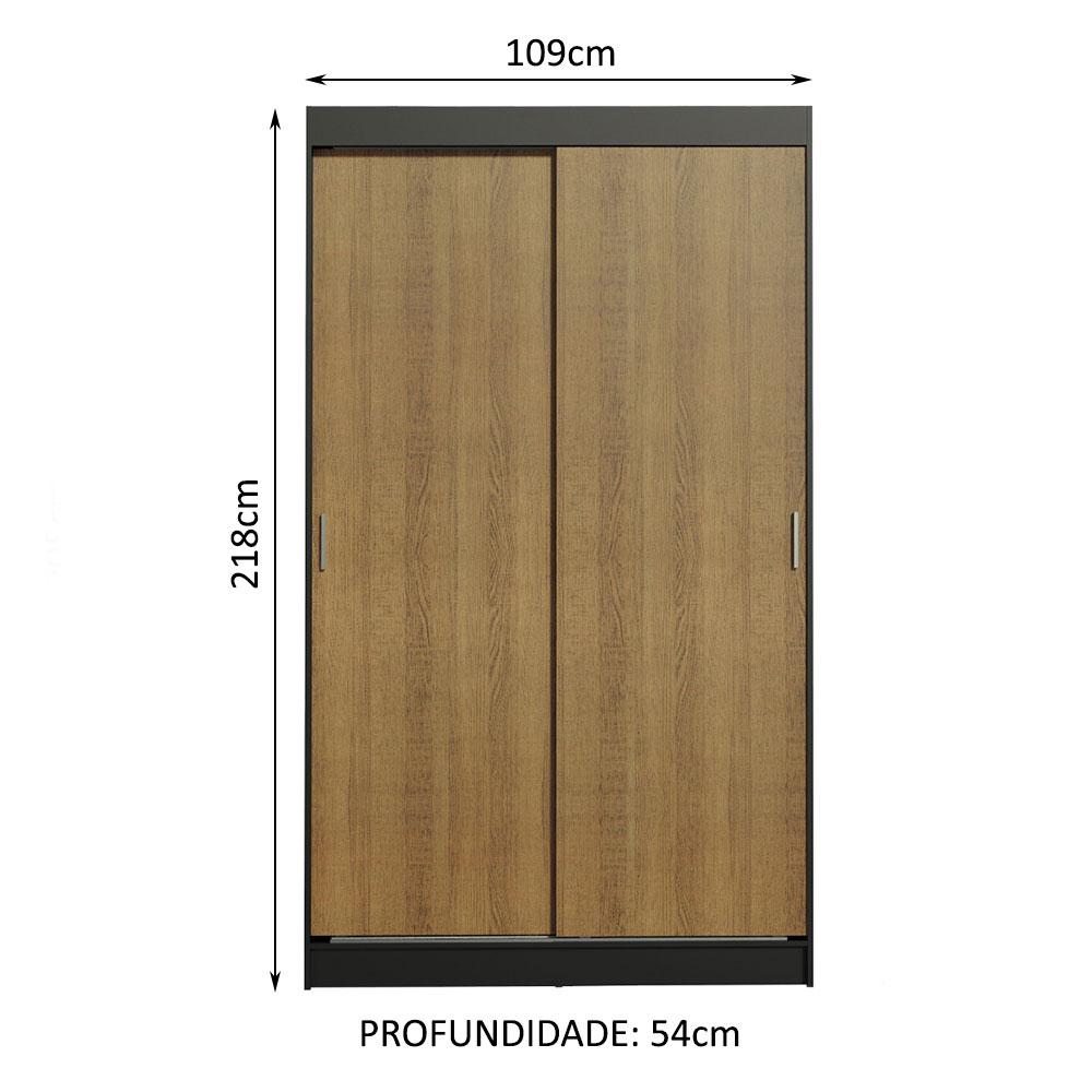 Guarda-Roupa Solteiro Madesa Tokio 2 Portas de Correr 2 Gavetas - Preto/Rustic