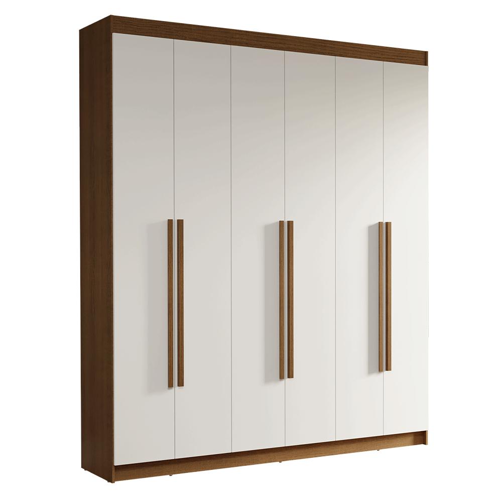 Guarda-Roupa Casal 6 Portas Batentes Rustic/Branco/Rustic Saturno Madesa