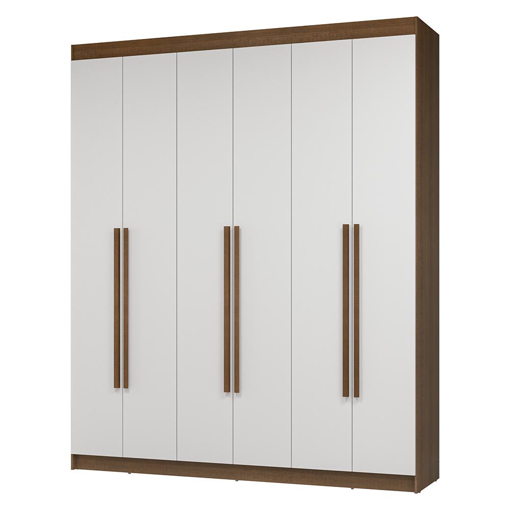 Guarda-Roupa Casal 6 Portas Batentes Rustic/Branco/Rustic Netuno Madesa