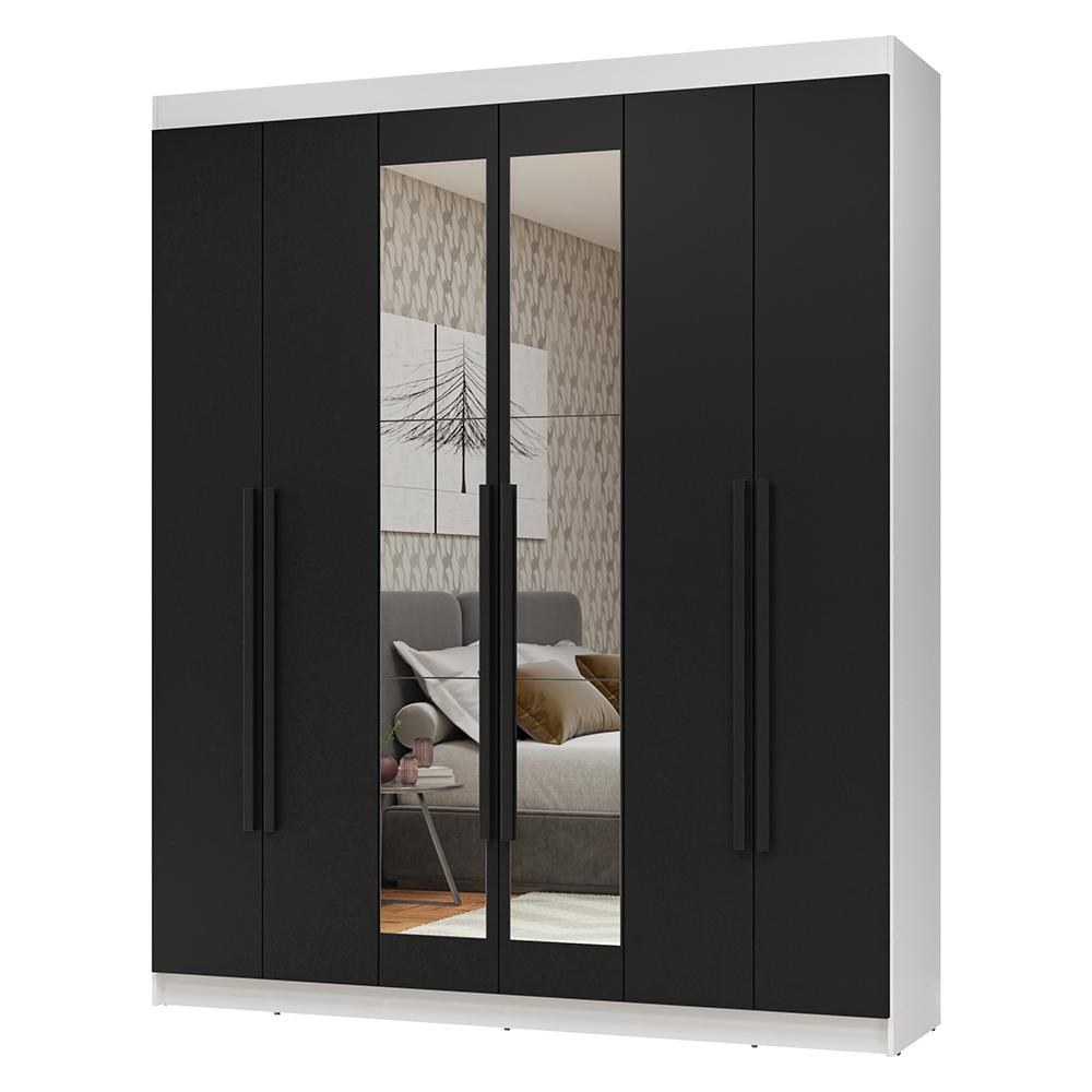 Guarda-Roupa Casal 6 Portas Batentes com Espelho Branco/Preto/Preto Netuno Madesa