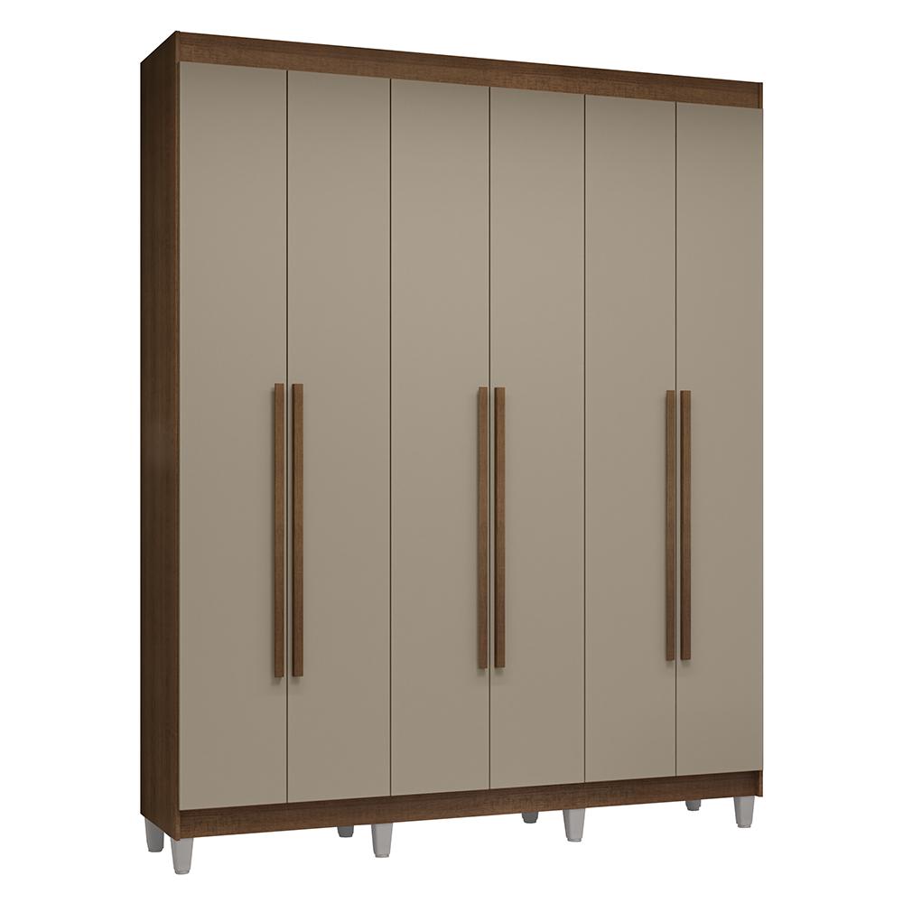 Guarda-Roupa Casal com Pés 6 Portas Batentes Rustic/Crema/Rustic Venus Madesa