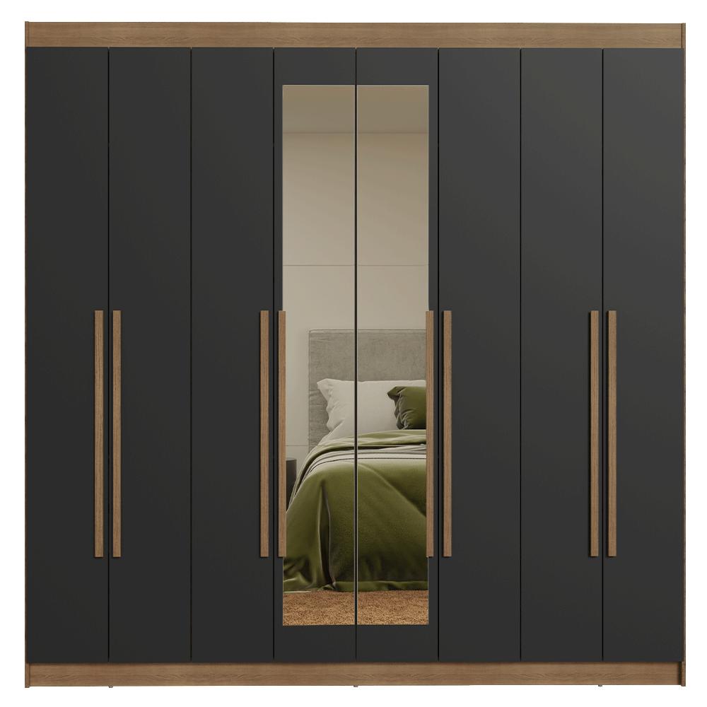 Guarda-Roupa Casal 8 Portas Batentes com Espelho Rustic/Preto/Rustic Venus Madesa