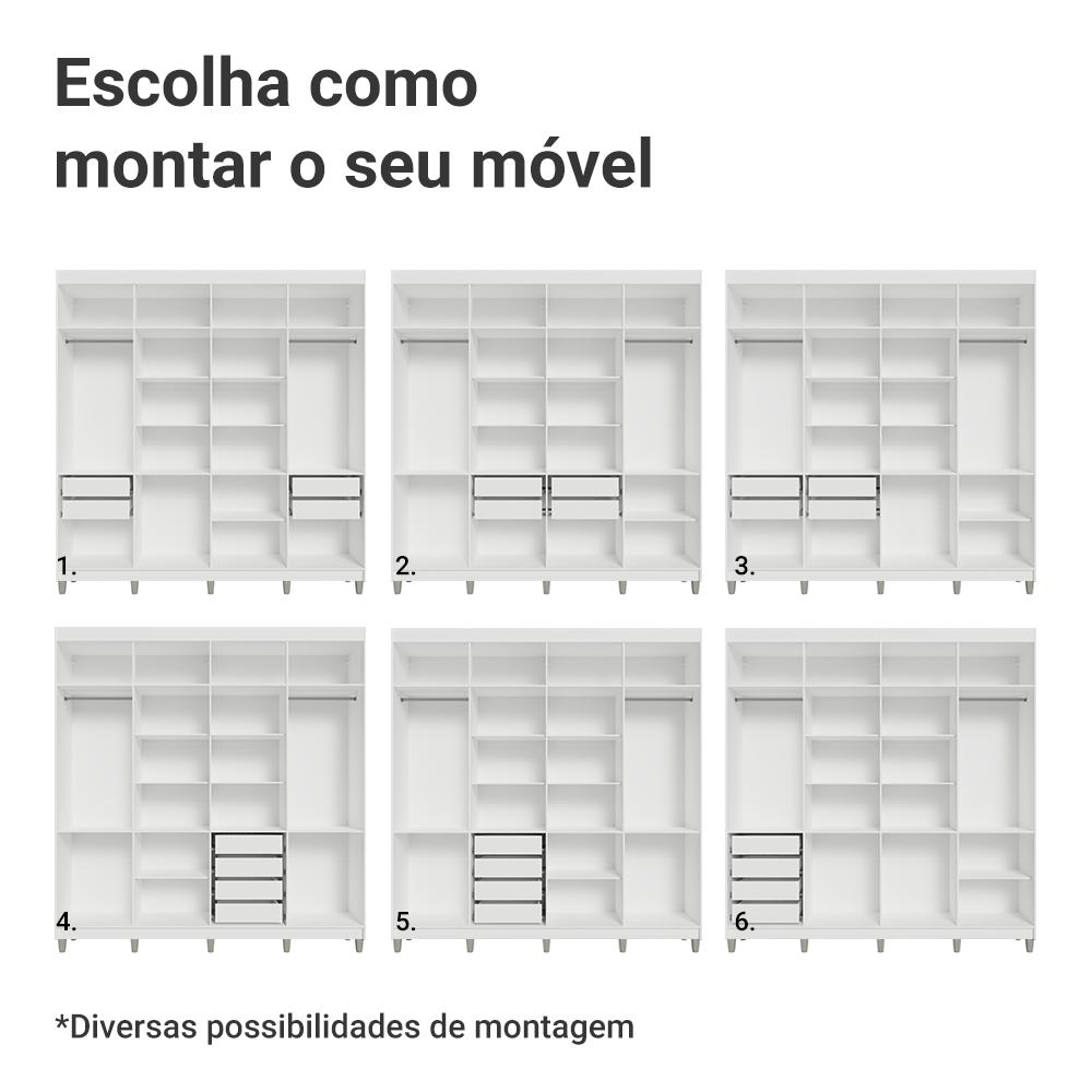 Guarda-Roupa Casal com Pés 8 Portas Batentes Branco/Branco/Rustic Saturno Madesa