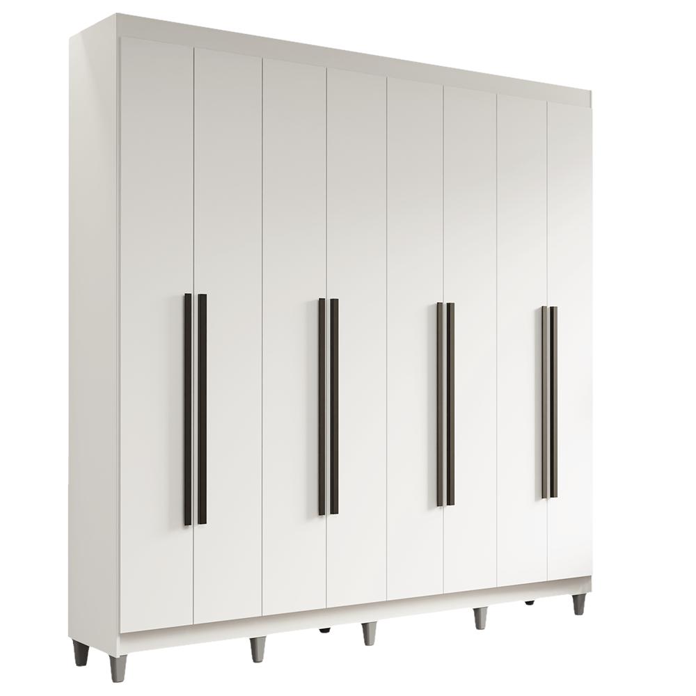Guarda-Roupa Casal com Pés 8 Portas Batentes Branco/Branco/Preto Saturno Madesa