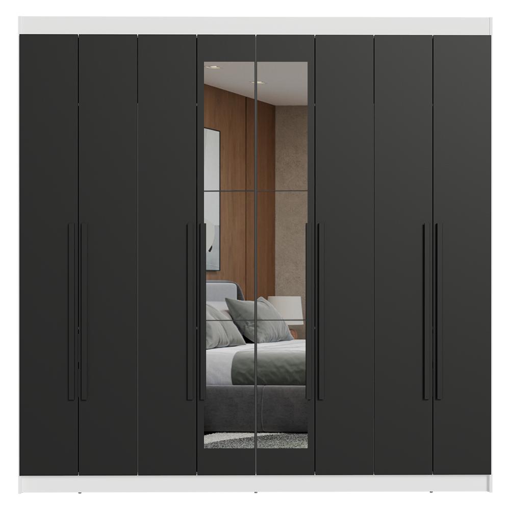 Guarda-Roupa Casal 8 Portas Batentes com Espelho Branco/Preto/Preto Netuno Madesa