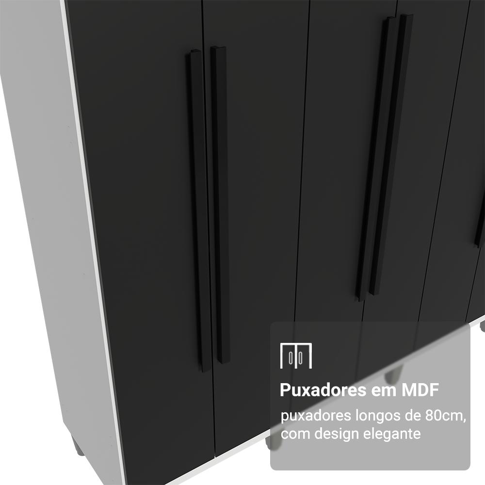 Guarda-Roupa Casal com Pés 8 Portas Batentes Branco/Preto/Preto Netuno Madesa