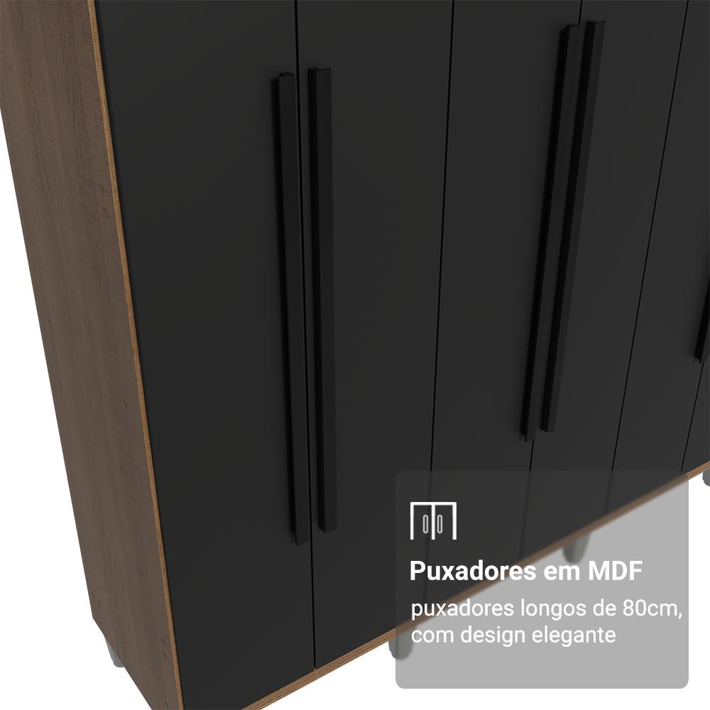 Guarda-Roupa Casal com Pés 8 Portas Batentes Rustic/Preto/Preto Saturno Madesa