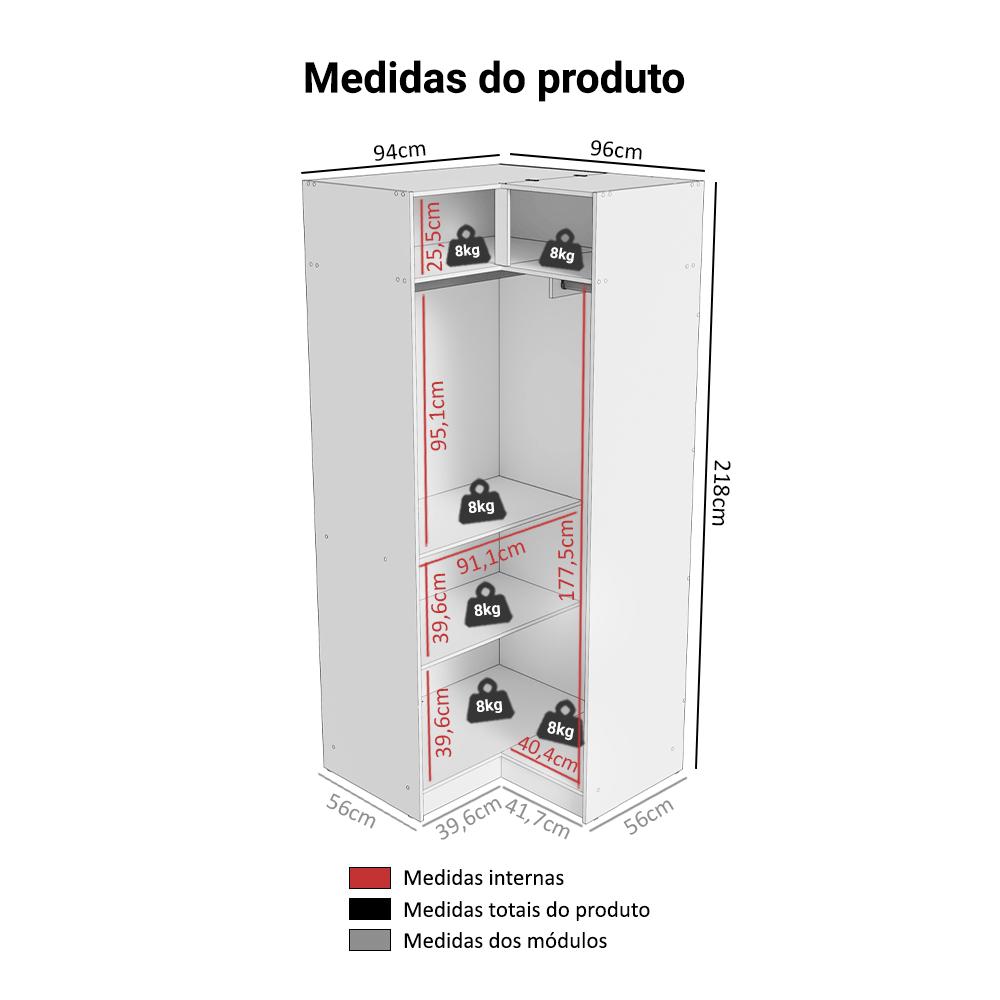 Guarda-Roupa Modulado de Canto 2 Portas Branco Neo Madesa