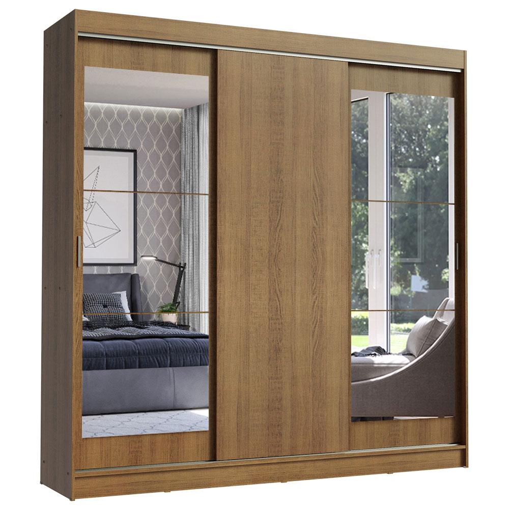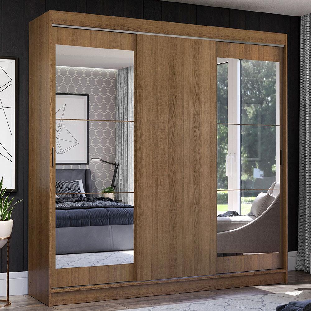 Com tamanho ideal para casal, o Guarda-Roupa Istambul da Madesa possui três portas de correr com deslizamento suave, trilhos em alumínio para maior resistência e dois puxadores externos.Um dos principais diferenciais desta versão são as duas portas com espelhos, que ampliam o ambiente e são bastante práticos no dia a dia. Internamente, o espaço é ótimo, com diversas prateleiras e nichos, além de três gavetas espaçosas com corrediças metálicas, muito mais seguras e resistentes.Para completar, os dois cabideiros são em alumínio e possuem espaços tanto para roupas curtas quanto mais longas. Ou seja, tem lugar pra organizar tudo: roupas, calçados, malas, travesseiros, edredons e muito mais.O acabamento externo é em amadeirado Rustic e a parte interna é branca. São feitos com a Pintura Poliéster exclusiva da Madesa. Esse processo é ecologicamente correto e conserva o móvel por muito mais tempo.Medidas totais do móvel: 218 cm de altura x 215 cm de largura x 54 cm de profundidade.As imagens são meramente ilustrativas.Itens inclusos:- Três (3) portas de correr com sistema anti-descarrilhamento, sendo duas delas com espelhos- Dois (2) puxadores em alumínio com detalhes em PVC- Três (3) gavetas internas com corrediças metálicas- Dois (2) cabideiros em alumínioCódigo do produto: 11185Z2EObs.: A Madesa não disponibiliza serviço de montagem. A embalagem acompanha as ferragens necessárias e o manual com todos os passos para a instalação do produto.1 – O produto é novo ou usado?R.: Todos os produtos da Madesa são novos, enviados da nossa fábrica diretamente para as casas de nossos clientes.2 – O produto vem montado? Se não, vocês realizam a montagem?R.: A Madesa não disponibiliza serviço de montagem. Todos os produtos seguem com manual de instalação e as ferragens necessárias. Alguns produtos possuem vídeo explicando o passo a passo da montagem.3 – Vocês possuem loja física? Posso retirar meu produto em mãos?R.: Não possuímos loja física, apenas loja virtual. Confira as opções de envio ao colocar o seu CEP.4 – Qual é o valor do envio? Posso pagar separadamente?R.: O valor do envio é calculado com base no peso e volume do produto, e no CEP de destino. Você pode calcular o valor e prazo de entrega no simulador.5 – A Madesa entrega em todo Brasil? Como é feita a entrega?R.: Sim, entregamos no Brasil inteiro através de transportadoras parceiras.6 – O produto acompanha Nota Fiscal?R.: Sim, todos os produtos são entregues com suas respectivas notas fiscais.7 – Os produtos possuem garantia?R.: Sim. A Madesa oferece 3 meses de garantia para defeitos de fabricação.A Madesa se dedica à sustentabilidade com várias iniciativas: temos uma usina própria para gerar energia que abastece uma de nossas fábricas. Selecionamos nossos fornecedores, priorizando aqueles que possuem um compromisso com a sustentabilidade e proteção do meio ambiente. Todo o plástico utilizado no setor produtivo é proveniente de reciclagem e as suas sobras são encaminhadas ao fornecedor que os recicla. Também investimos no desenvolvimento contínuo de nossos colaboradores e em ações educacionais que beneficiem a comunidade.